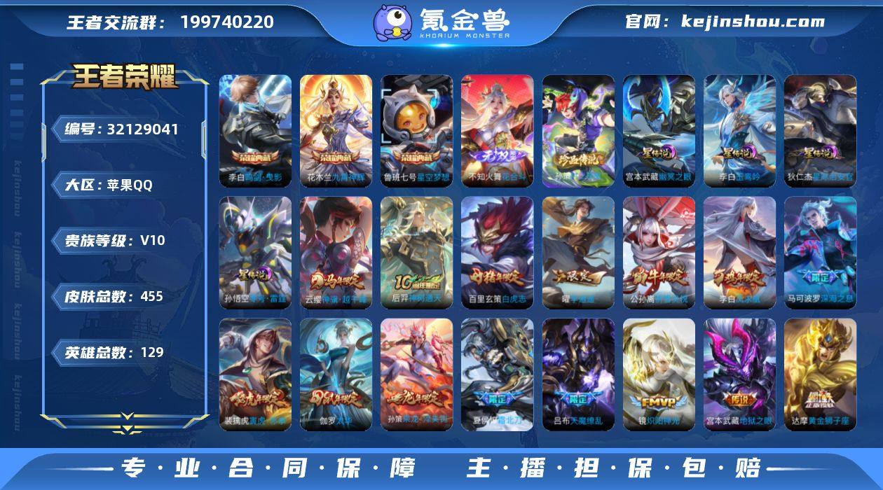可二次【特价出售/店主推荐/1省标/3市标/7090星币】:苹果Q-V10-最强王者段位-129英雄-455皮肤-3典藏皮肤-1典藏英雄-1无双-1珍品传说-4星元-51传说-152史诗 【英雄全皮】:刘邦全皮,孙权全皮,雅典娜全皮,敖隐全皮,蒙恬全皮,影全皮 【荣耀典藏】:武则天英雄,鲁班七号星空梦想,李白鸣剑曳影,花木兰九霄神辉 【无双皮肤】:不知火舞花合斗 【珍品传说】:孙策时之奇旅 【传说皮肤】:云缨神骥越千峰,后羿神树通天,桑启鸣野蒿,夏侯惇霜北刀,孙策乘龙淬吴钩,艾琳觅芳踪,大乔时之奇旅,鲁班七号时之奇旅,兰陵王影龙天霄,吕布遇见神鼓,宫本武藏惊梅引,云缨鹤归松栖,马可波罗妄想实况,澜电玩雷克斯,吕布怒海麟威,马可波罗深海之息,蔡文姬花朝如约,孙策末日机甲,裴擒虎寅虎赤拳,鲁班七号寅虎瑞焰,孙尚香异界灵契,貂蝉遇见胡旋,赵云淬星耀世,王昭君乞巧织情,西施游龙清影,曜李逍遥 ,周瑜音你心动,兰陵王默契交锋,公孙离祈雪灵祝,诸葛亮时雨天司,铠绛天战甲,镜炽阳神光,虞姬启明星使,孙悟空零号赤焰,关羽武圣,曜云鹰飞将,李信一念神魔,伽罗太华,张良黄金白羊座,干将莫邪久胜战神,虞姬云霓雀翎,达摩黄金狮子座,百里玄策白虎志,花木兰冠军飞将,梦奇胖达荣荣,后羿黄金射手座,貂蝉仲夏夜之梦,李白凤求凰,宫本武藏地狱之眼,吕布天魔缭乱,狄仁杰超时空战士 【限定皮肤】:夏侯惇霜北刀,暃埋骨钱,大乔绒语心约,姜子牙天穹之誓,李白谪仙醉月,狄仁杰阴阳师,赵云皇家上将,赵云龙胆,墨子神迹守卫,孙尚香蔷薇恋人,孙尚香异界灵契,鲁班七号乒乒小将,鲁班七号寅虎瑞焰,鲁班七号时之奇旅,庄周玄嵩,庄周高山流水,高渐离死亡摇滚,高渐离玩趣恶龙,阿轲迷踪丽影,钟无艳超时空战士,孙膑天狼运算者,扁鹊奇幻香踪,芈月白晶晶,吕布天魔缭乱,吕布御风骁将,吕布遇...