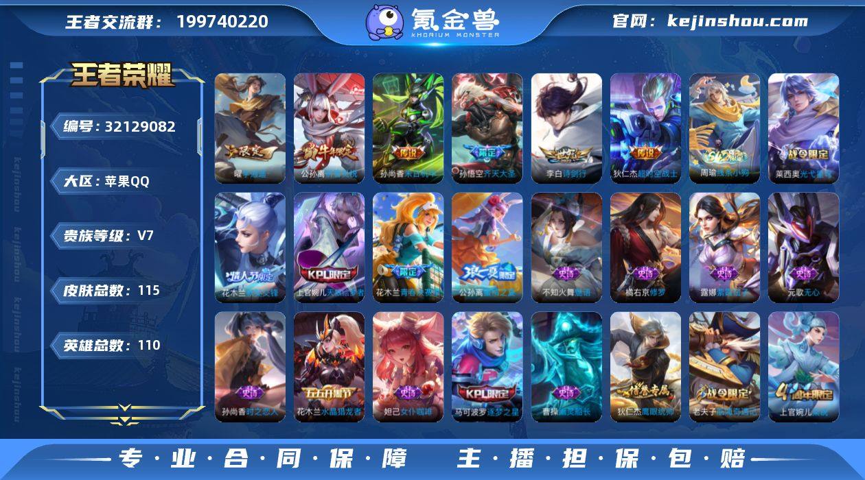 ky 苹果(q)区 115皮 6传说 43限定 10王者印记 亮点推荐:【末日机甲-孙尚香 李逍遥 超时空战士-狄仁杰】道具内容:1按键 88亲密玫瑰 19浓情玫瑰
