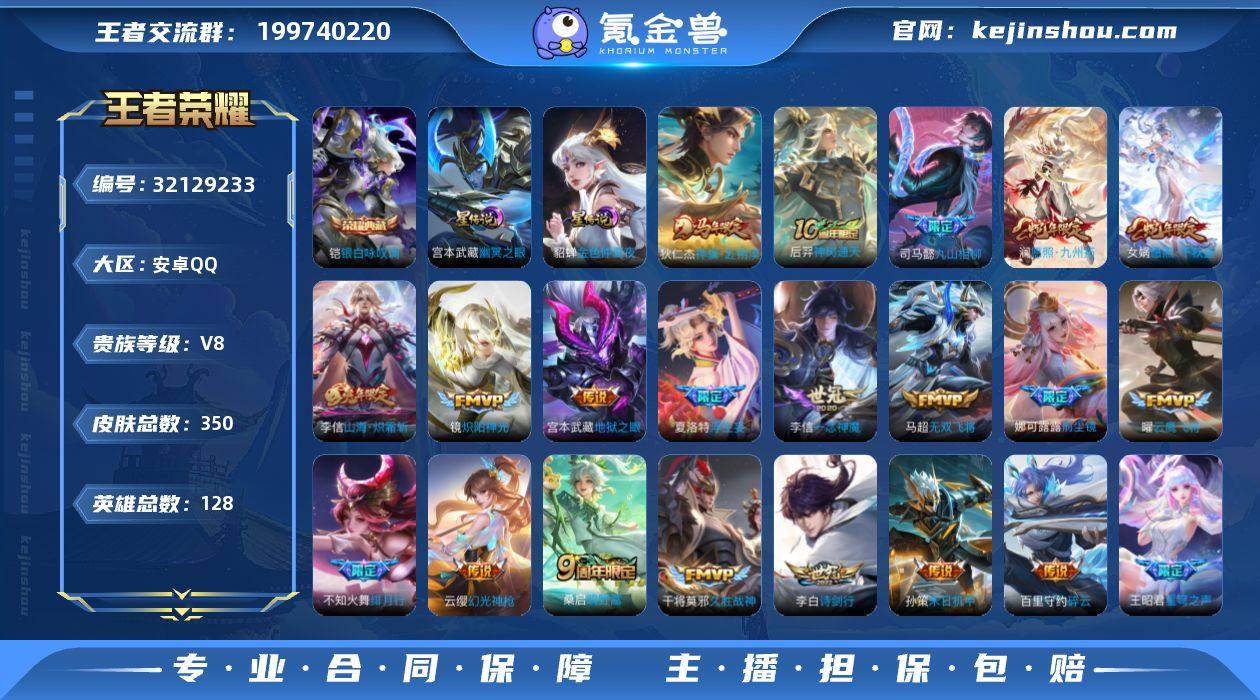 可二次【特价出售/店主推荐/2市标/30段对抗】:安卓Q-V8-最强王者段位-128英雄-350皮肤-1典藏皮肤-2星元-24传说-109史诗 【英雄全皮】:刘禅全皮,司马懿全皮,孙权全皮,娜可露露全皮,敖隐全皮,蒙恬全皮,阿古朵全皮,夏洛特全皮,戈娅全皮,空空儿全皮,影全皮,海诺全皮 【荣耀典藏】:铠银白咏叹调 【传说皮肤】:狄仁杰神骥赴朔漠,后羿神树通天,司马懿九山相柳,女娲愿照千秋盛,澜愿照九州拓,云缨幻光神枪,桑启鸣野蒿,夏洛特浮生妄,花木兰燃星之曲,李信山海炽霜斩,李白诗剑行,不知火舞绯月行,王昭君星穹之声,百里守约碎云,娜可露露前尘镜,马超无双飞将,孙策末日机甲,镜炽阳神光,虞姬启明星使,曜云鹰飞将,李信一念神魔,干将莫邪久胜战神,梦奇胖达荣荣,宫本武藏地狱之眼 【限定皮肤】:大乔绒语心约,姜子牙天穹之誓,狄仁杰阴阳师,赵云皇家上将,赵云百木心枪,妲己时之奇旅,嬴政优雅恋人,孙尚香蔷薇恋人,庄周高山流水,高渐离死亡摇滚,钟无艳超时空战士,扁鹊奇幻香踪,白起夜都怪侠,芈月幻夜卜梦,元歌无心,甄姬落雪兰心,马可波罗山海玄木吟,狄仁杰魔术师,狄仁杰万华元夜,达摩沙漠行僧,项羽海滩派对,程咬金演武夺筹,王昭君午后时光,王昭君星穹之声,兰陵王金庭之子,花木兰燃星之曲,不知火舞绯月行,娜可露露前尘镜,孙悟空孙行者,后羿圣弓游侠,李元芳云中旅人,虞姬启明星使,钟馗驱傩正仪,杨戬潮玩骑兵,干将莫邪真爱魔法,鬼谷子五谷丰年,黄忠火炮绅士,铠青龙志,苏烈千军破阵,百里玄策原初追逐者,梦奇顽趣,公孙离玉兔公主,沈梦溪大漠名商,沈梦溪匿光破解者,明世隐吟游魔法,裴擒虎天狼狩猎者,裴擒虎擒涛扼浪,狂铁电玩高手,云中君纤云弄巧,李信山海炽霜斩,上官婉儿梁祝,嫦娥拒霜思,嫦娥暖冬兔眠,西施玲珑珍味,鲁班大师探海日志,镜匿光追影...