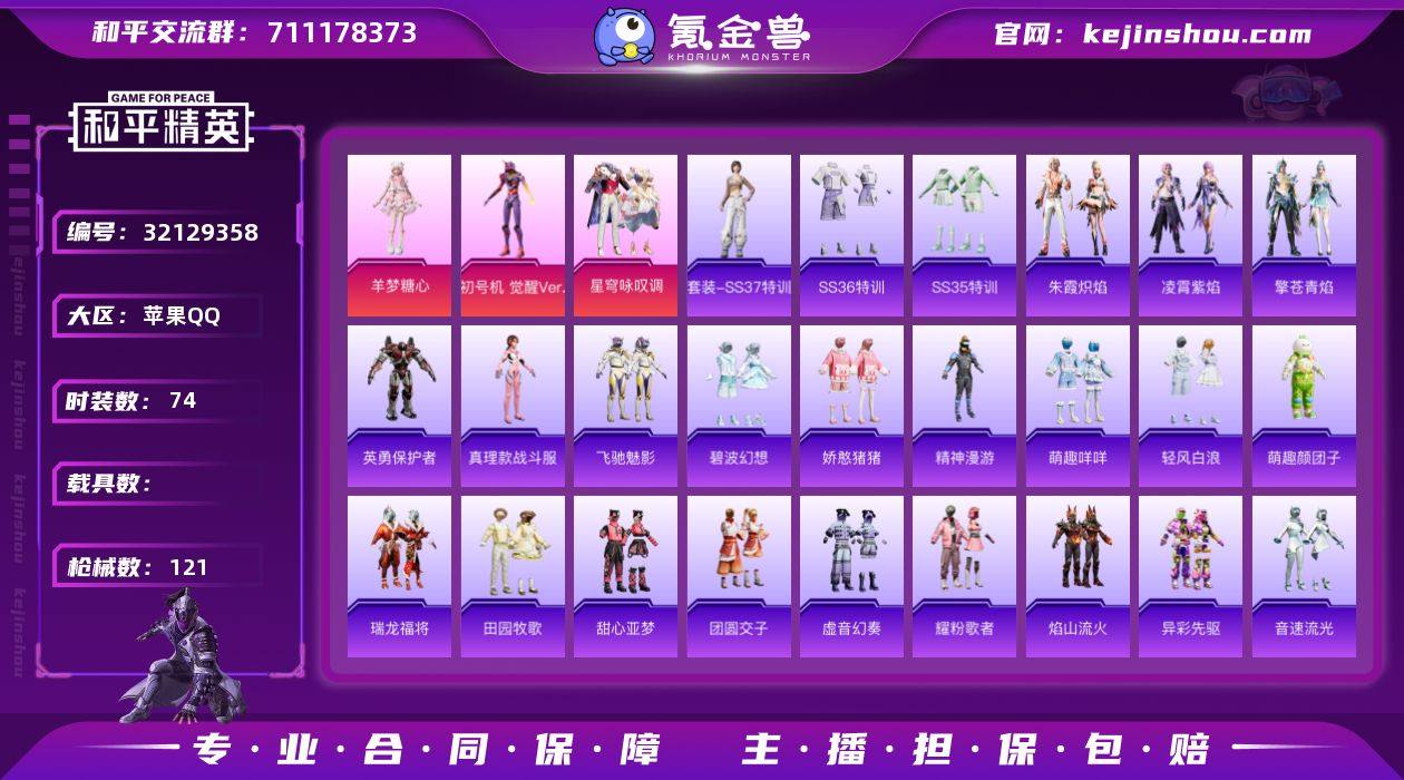 【和平精英】3粉装,8特效枪,0载具,历史最高段位:超级王牌11星 王牌印记8次 热力值:68748,165套装,247枪械,259装备,126战备;套装:角色-初号机 觉醒Ver.,套装-星穹咏叹调,角色-羊梦糖心,套装-特训学院,套装-青年教官,套装-红色运动,套装-黄色运动,套装-蓝色运动,套装-黄色伏地魔,套装-白色伏地魔,套装-黑色伏地魔,套装-骑行爱好者,套装-竞技名士,套装-酒红色名流,套装-湖蓝色名流,套装-黄色名流,套装-猛禽,套装-长空猛禽,套装-漫步者,套装-竞技勇士朋克,套装-海岛探路者,套装-旭日情侣,套装-冷焰舞者,套装-灼焰舞者,套装-浪漫天命,套装-沙漠毒蛇,套装-鹰眼刺客,套装-冰冻风暴,套装-完美偶像,套装-幻影武者,套装-街头潮人,套装-蓝彩潮人,套装-怒火燎原,套装-魅力单车,套装-绮丽涂鸦,套装-竞技达人朋克,套装-超能勇士,套装-狂沙舞者,套装-破晓战魂,套装-森林游猎者,套装-都市魅力,套装-热血青春,套装-沙漠兵团,套装-雪山精英,套装-酷潮明星,套装-幻世战舞者,套装-清新柠檬,套装-暗影哥特,套装-夏日倾情,套装-青涩时光,套装-缤纷果语,套装-Alan Walker,套装-龙魂突击队,套装-冰川特警,套装-元素星魂,套装-极速红龙,套装-麻辣教官,套装-破蛋小黄鸡,套装-疯狂小兔子,套装-花面小丑,套装-SS5特训,套装-北国孤狼,套装-SS6特训,套装-仓鼠灰灰,套装-SS7特训,套装-精神漫游,套装-鹤鸣,套装-萌黄之夏,套装-夏日音浪,套装-探宝勇士,套装-牛气满满,套装-白糯汤圆,套装-萌趣颜团子,套装-战术大师,套装-狙击之神,套装-SS12特训,套装-牛气冲天,套装-SS18特训,套装-耀粉歌者,套装-飞行日记,套装-SS13特训,套装-热情海星,套装-纯真浪花,角色-真理款战斗服,角色-英勇保护者,套装-SS17特训,套装-瑞龙福将,套装-团圆交子,套装-焰山流...