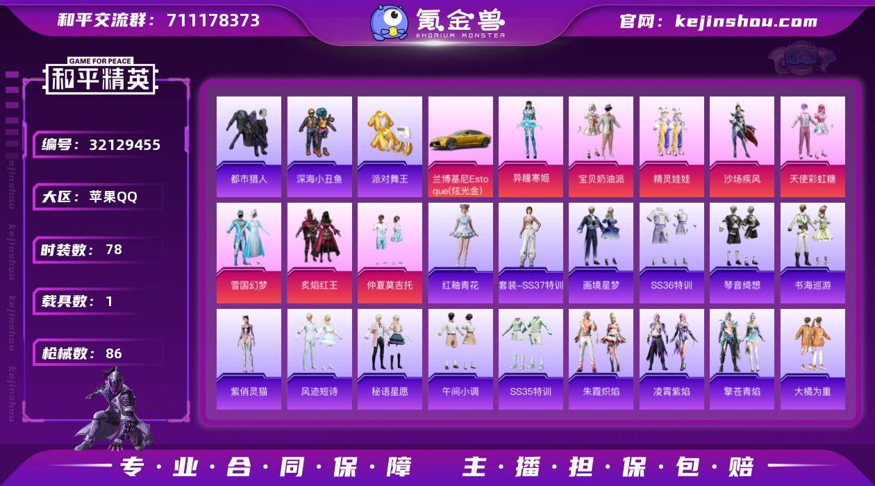【和平精英】8粉装,10特效枪,1载具,历史最高段位:超级王牌12星 王牌印记12次 热力值:64131,166套装,173枪械,234装备,99战备;套装:套装-宝贝奶油派,套装-天使彩虹糖,套装-雪国幻梦,套装-炙焰红王,套装-沙场疾风,套装-精灵娃娃,套装-仲夏莫吉托,角色-异瞳寒姬,套装-青年教官,套装-红色运动,套装-黄色运动,套装-蓝色运动,套装-黄色伏地魔,套装-白色伏地魔,套装-黑色伏地魔,套装-竞技名士,套装-湖蓝色名流,套装-猛禽,套装-长空猛禽,套装-漫步者,套装-竞技勇士朋克,套装-黎明保卫者,套装-蓝色守护者,套装-雨林探路者,套装-旭日情侣,套装-都市猎人,套装-浪漫天命,套装-战地菁英,套装-缤纷假日,套装-浪漫假日,套装-特殊使命,套装-街舞达人,套装-滨海假日,套装-鹰眼刺客,套装-苍穹猎鹰,套装-冰冻风暴,套装-幻影武者,套装-海滨突袭者,套装-特战英豪,套装-街头潮人,套装-蓝彩潮人,套装-魅力单车,套装-绮丽涂鸦,套装-耀眼新星,套装-超能勇士,套装-狂沙舞者,套装-破晓战魂,套装-热血青春,套装-潮流炫酷,套装-派对舞王,套装-派对绅士,套装-酷潮明星,套装-极地朋克,套装-幻世战舞者,套装-甜蜜菠萝,套装-清新柠檬,套装-半糖蓝莓,套装-弄潮海豚,套装-迅捷狂鲨,套装-呆萌铁蟹,套装-深海小丑鱼,套装-夏日倾情,套装-甜蜜熊情侣,套装-青涩时光,套装-Alan Walker,套装-风暴特警,套装-冰川特警,套装-幻影公爵,套装-麻辣教官,套装-小丑鱼,套装-粉红小猪,套装-破蛋小黄鸡,套装-疯狂小兔子,套装-北国孤狼,套装-SS6特训,套装-格斗专家,套装-淡雅花蕊,套装-跃动心情,套装-霓虹街区,套装-大橘为重,套装-软萌银虎,套装-白熊同盟,套装-动感兔斯基人偶服,套装-夏日音浪,套装-牛气满满,套装-战术大师,套装-狙击之神,套装-SS18特训,套装-耀粉歌...
