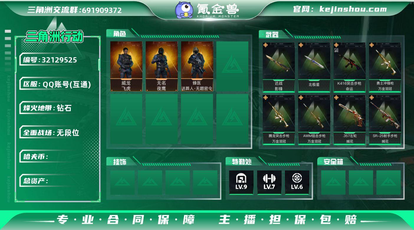 hf14525总资产289m纯币82m+飞虎全套+北极星全套+影锋刀+捞点薯条全套+特斯拉线圈全套+锦绣全套+万金泪冠全套+缄花全套+命运优品c+s4s5s8赛季通行证+烽火等级60+特勤部门等级可以+永久包赔