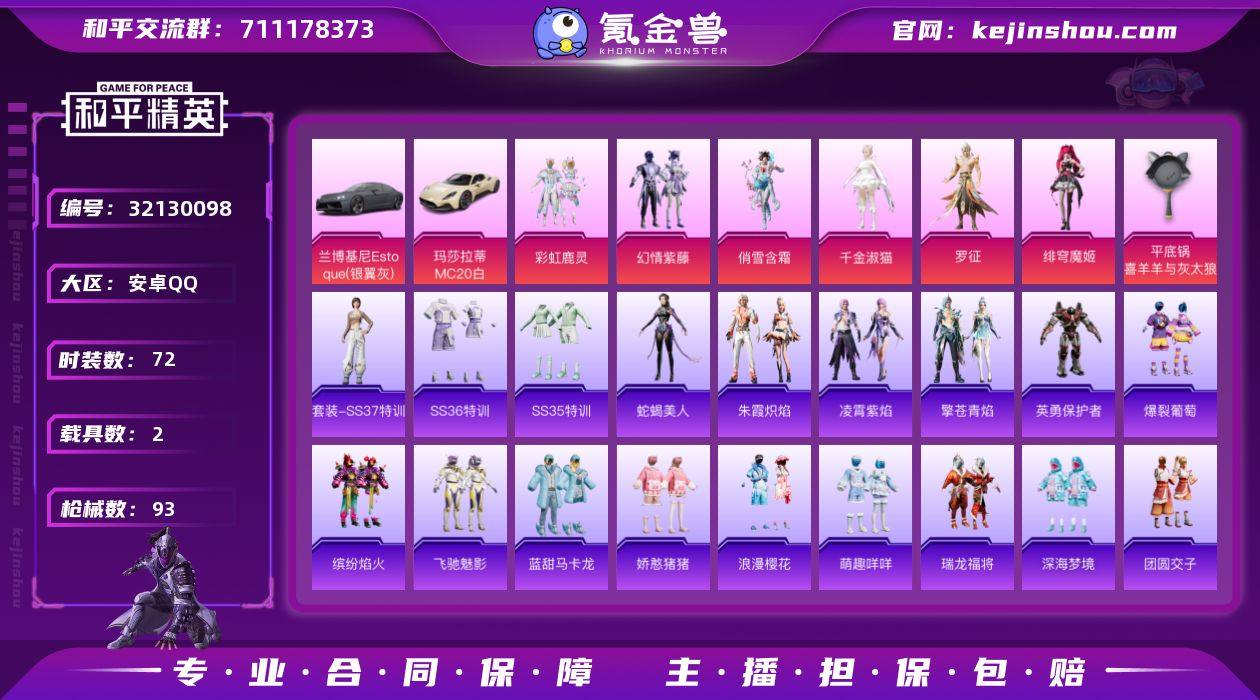 【和平精英】6粉装,8特效枪,2载具,历史最高段位:超级王牌7星 王牌印记6次 热力值:70323,179套装,228枪械,255装备,115战备;套装:套装-幻情紫藤,套装-彩虹鹿灵,套装-俏雪含霜,角色-千金淑猫,角色-绯穹魔姬,角色-罗征,套装-特训学院,套装-猎鹰,套装-青年教官,套装-橘黑制服,套装-红色运动,套装-黄色运动,套装-蓝色运动,套装-黄色伏地魔,套装-白色伏地魔,套装-黑色伏地魔,套装-登山爱好者,套装-竞技名士,套装-深蓝色名流,套装-酒红色名流,套装-湖蓝色名流,套装-黄色名流,套装-猛禽,套装-游猎者,套装-长空猛禽,套装-沙漠雄狮,套装-竞技勇士朋克,套装-蓝色守护者,套装-海岛探路者,套装-冷焰舞者,套装-灼焰舞者,套装-刚毅裁决者,套装-特战装甲,套装-战地菁英,套装-战地督导,套装-黄色格斗者,套装-灰色格斗者,套装-甜蜜告白,套装-战地名士,套装-沙漠毒蛇,套装-完美偶像,套装-人气偶像,套装-幻影武者,套装-街头潮人,套装-蓝彩潮人,套装-酷萌兔限定,套装-怒火燎原,套装-决胜时刻,套装-魅力单车,套装-绮丽涂鸦,套装-坚韧舞者,套装-竞技达人朋克,套装-夜莺强袭者,套装-破晓战魂,套装-都市魅力,套装-热血青春,套装-潮流炫酷,套装-沙漠兵团,套装-丛林猎人,套装-SS2特训,套装-雪山精英,套装-幻世战舞者,套装-缤纷果语,套装-龙魂突击队,套装-元素星魂,套装-极速红龙,套装-SS3特训,套装-SS4特训,套装-破蛋小黄鸡,套装-疯狂小兔子,套装-SS5特训,套装-圣诞大吉,套装-北国孤狼,套装-SS6特训,套装-跃动心情,套装-SS7特训,套装-鹤鸣,套装-SS10特训,套装-SS8特训,套装-众神之王,套装-智慧之神,套装-夏日音浪,套装-SS9特训,套装-蓝甜马卡龙,套装-牛气满满,套装-白糯汤圆,套装-SS11特训,套装-战术大师,套装-狙击之神,套装-SS18特训,套...