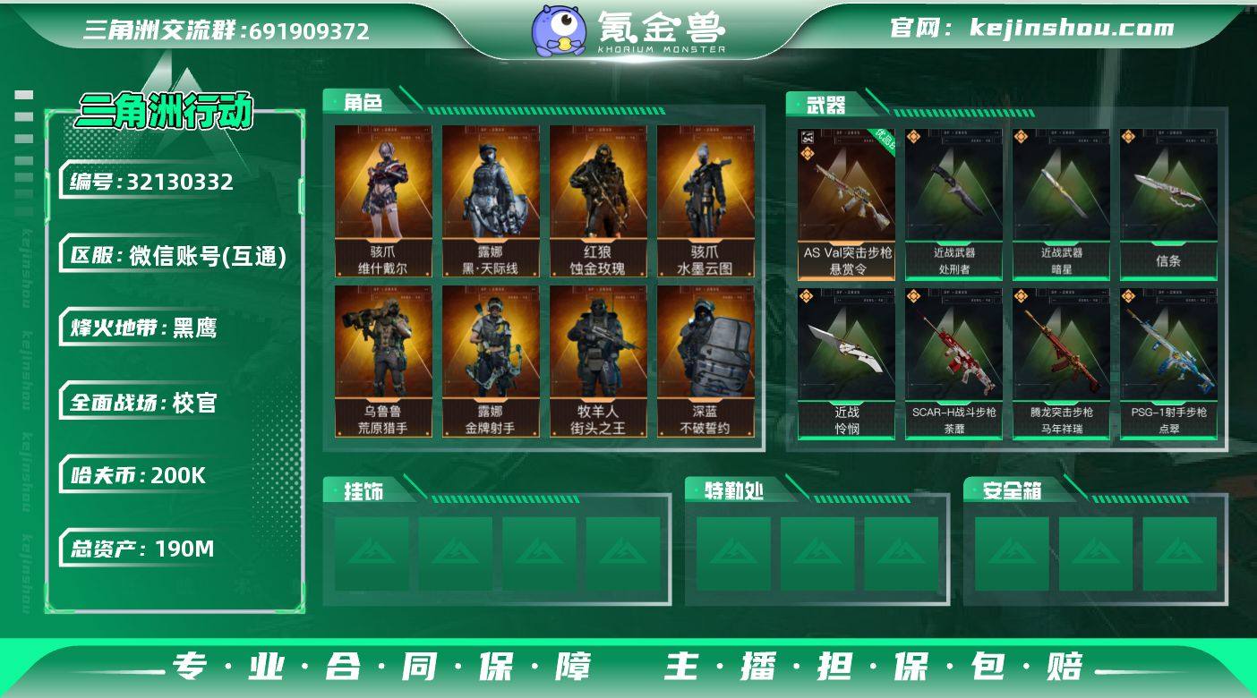 实名:不可二次实名 总资产:190M 哈夫币:200K 烽火地带段位:黑鹰 全面战场段位:校官