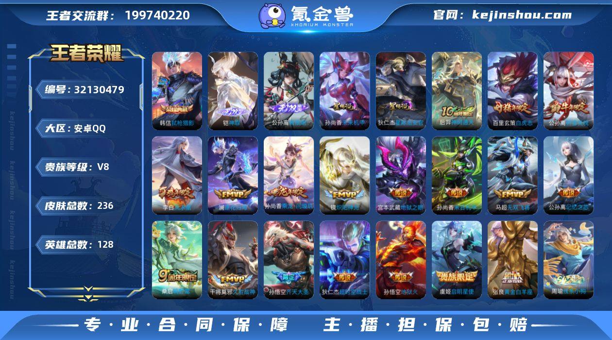 安卓Q-V8-最强王者段位-128英雄-236皮肤-1典藏皮肤-2无双-19传说-67史诗【英雄全皮】:孙权全皮,敖隐全皮,金蝉全皮【荣耀典藏】:韩信弑枪猎影【无双皮肤】:铠神罪,公孙离离恨烟【传说皮肤】:马超神骥逐星野,后羿神树通天,桑启鸣野蒿,孙尚香乘龙问璇玑,澜逐花归海,公孙离记忆之芯,孙悟空齐天大圣,马超无双飞将,公孙离祈雪灵祝,镜炽阳神光,虞姬启明星使,张良黄金白羊座,干将莫邪久胜战神,百里玄策白虎志,李白凤求凰,孙尚香末日机甲,宫本武藏地狱之眼,孙悟空地狱火,狄仁杰超时空战士【限定皮肤】:公孙离离恨烟,蔡文姬夏日便利店,大乔绒语心约,虞姬夏日便利店,姜子牙天穹之誓,狄仁杰阴阳师,赵云皇家上将,赵云引擎之心,孙尚香蔷薇恋人,元歌无心,狄仁杰魔术师,狄仁杰万华元夜,达摩沙漠行僧,项羽海滩派对,韩信傲雪梅枪,兰陵王金庭之子,孙悟空至尊宝,孙悟空齐天大圣,李元芳云中旅人,虞姬启明星使,鬼谷子五谷丰年,苏烈千军破阵,百里玄策白虎志,百里玄策原初追逐者,公孙离祈雪灵祝,沈梦溪大漠名商,裴擒虎李小龙,裴擒虎擒涛扼浪,云中君纤云弄巧,嫦娥拒霜思,嫦娥暖冬兔眠,西施玲珑珍味,鲁班大师探海日志,桑启海盐诗旅,金蝉唐三藏,暃星界游侠,戈娅驭风魔法,艾琳女武神,艾琳流音漫舞,司空震地狱燃心,阿古朵江河有灵,张良古海寻踪,高渐离燃音魔法,妲己灵卜魔法,鬼谷子天穹祈灯,伽罗琥珀纪元,孙尚香乘龙问璇玑,沈梦溪龙舞盛年,鲁班七号蔬乡物语,李元芳蔬乡物语,刘邦剑破天穹,刘备异域游侠,周瑜熔金海岸【年限皮肤】:李白凤求凰,百里玄策白虎志,公孙离祈雪灵祝,孙尚香乘龙问璇玑【赛季限定】:狄仁杰万华元夜,苏烈千军破阵,达摩沙漠行僧,兰陵王金庭之子,沈梦溪大漠名商,李元芳云中旅人,桑启海盐诗旅,裴擒虎擒涛扼浪,鲁班大师探海日志,...