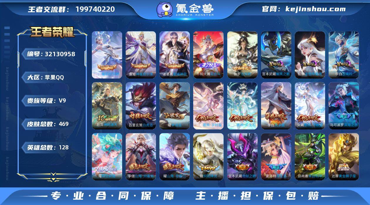 【秒换绑】苹果Q-V9-永恒钻石IV段位-128英雄-469皮肤-3典藏皮肤-1无双-1珍品传说-58传说-146史诗 【英雄全皮】:孙权全皮,不知火舞全皮,娜可露露全皮,橘右京全皮,鬼谷子全皮,狂铁全皮,敖隐全皮,蒙恬全皮,夏洛特全皮,金蝉全皮,影全皮,海诺全皮 【荣耀典藏】:诸葛亮星域神启,虞姬神鉴启示录,伽罗最初的交响 【无双皮肤】:不知火舞花合斗 【珍品传说】:伽罗沧流箭 【传说皮肤】:后羿神树通天,杨玉环星之鸣奏,女娲愿照千秋盛,妲己愿照众生和,虞姬愿照岁时盈,云缨幻光神枪,王昭君映山客,桑启鸣野蒿,铠冥王哈迪斯,云中君群星魔术团,诸葛亮鹤羽星尊,夏洛特浮生妄,伽罗炽翼辉光,孙悟空齐天大圣,小乔山海琳琅生,曜山海苍雷引,李信山海炽霜斩,李白诗剑行,狄仁杰神器狴犴令,不知火舞绯月行,王昭君星穹之声,百里守约碎云,橘右京枫霜尽,娜可露露前尘镜,孙尚香音你闪耀,马可波罗深海之息,马超无双飞将,瑶时之祈愿,孙尚香异界灵契,貂蝉遇见胡旋,王昭君乞巧织情,西施游龙清影,曜李逍遥 ,周瑜音你心动,小乔音你心动,兰陵王默契交锋,诸葛亮时雨天司,铠绛天战甲,镜炽阳神光,虞姬启明星使,孙悟空零号赤焰,曜云鹰飞将,李信一念神魔,刘备时之恋人,貂蝉猫影幻舞,张良黄金白羊座,干将莫邪久胜战神,虞姬云霓雀翎,达摩黄金狮子座,百里玄策白虎志,花木兰冠军飞将,后羿黄金射手座,诸葛亮武陵仙君,貂蝉仲夏夜之梦,李白凤求凰,孙尚香末日机甲,宫本武藏地狱之眼,狄仁杰超时空战士 【限定皮肤】:白起狰,铠冥王哈迪斯,蒙犽顽岩魄,蔡文姬夏日便利店,大乔绒语心约,虞姬夏日便利店,姜子牙天穹之誓,杨戬破阵退雄兵,李白谪仙醉月,狄仁杰阴阳师,小乔山海琳琅生,赵云皇家上将,墨子神迹守卫,墨子降魔,妲己时之奇旅,嬴政优雅恋人,嬴政白昼王子,孙尚香蔷薇恋人...