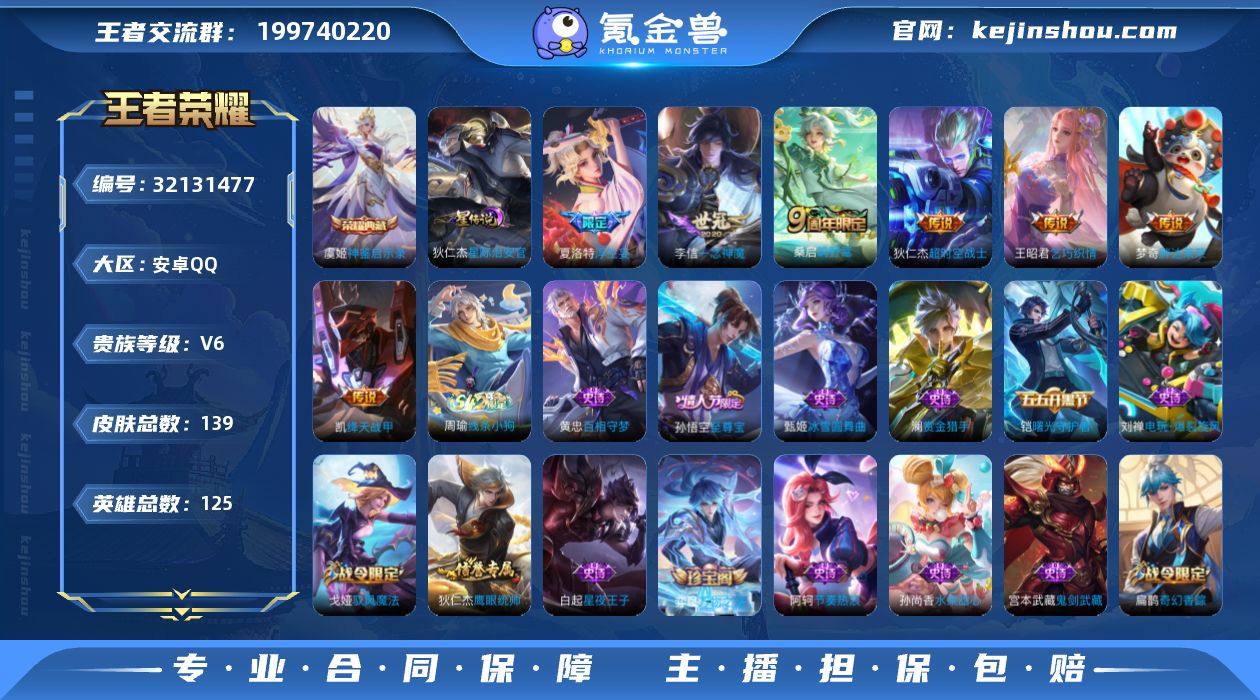 W14963,,可立即换绑无需挂单养号,铭文满级,,,典藏1,,传说7,,,星传说1,,按键6,,夺宝17,,,安卓Q-V6-永恒钻石V段位-125英雄-139皮肤-1典藏皮肤-7传说-24史诗 【荣耀典藏】:虞姬神鉴启示录 【传说皮肤】:桑启鸣野蒿,夏洛特浮生妄,王昭君乞巧织情,铠绛天战甲,李信一念神魔,梦奇胖达荣荣,狄仁杰超时空战士 【限定皮肤】:蒙犽顽岩魄,姜子牙天穹之誓,狄仁杰阴阳师,赵云皇家上将,扁鹊奇幻香踪,狄仁杰魔术师,项羽海滩派对,孙悟空至尊宝,杨戬潮玩骑兵,裴擒虎擒涛扼浪,西施玲珑珍味,鲁班大师探海日志,桑启海盐诗旅,夏洛特浮生妄,戈娅驭风魔法,张良古海寻踪,鬼谷子天穹祈灯,沈梦溪龙舞盛年,刘邦剑破天穹,周瑜熔金海岸 【赛季限定】:桑启海盐诗旅,裴擒虎擒涛扼浪,鲁班大师探海日志,张良古海寻踪,鬼谷子天穹祈灯,刘邦剑破天穹,姜子牙天穹之誓,钟馗虚灵犬护,甄姬逆浪荇歌 【战令限定】:扁鹊奇幻香踪,杨戬潮玩骑兵,戈娅驭风魔法,西施玲珑珍味,周瑜线条小狗 【史诗皮肤】:周瑜线条小狗,黄忠百相守梦,弈星万物之道,蒙犽顽岩魄,戈娅驭风魔法,刘禅电玩爆裂旋风,扁鹊奇幻香踪,澜赏金猎手,狄仁杰鹰眼统帅,阿轲节奏热浪,白起星夜王子,刘禅天才门将,蔡文姬舞动绿茵,铠曙光守护者,刘邦德古拉伯爵,孙悟空至尊宝,墨子金属风暴,妲己魅力维加斯,孙尚香水果甜心,宫本武藏鬼剑武藏,廉颇地狱岩魂,狄仁杰魔术师,甄姬冰雪圆舞曲,貂蝉圣诞恋歌,赵云皇家上将 【其他皮肤】:鬼谷子克喵,莱西奥踏浪烽翎,甄姬逆浪荇歌,张良灵野札记,苏烈春野闲踪,钟馗虚灵犬护,周瑜熔金海岸,姜子牙天穹之誓,刘邦剑破天穹,沈梦溪龙舞盛年,鬼谷子天穹祈灯,后羿完美运算,张良古海寻踪,哪吒热血海滩,李元芳妄想特派,姬小满零食大作战,西施玲珑珍味,鲁班大师探海日志,...