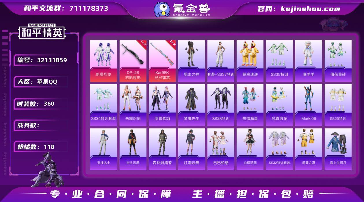 qz225历史无敌战神框-小白龙-1粉装-2特效枪-34587热力值-9王牌印记-94套装-118枪皮【优质套装】: 新星烈龙【特效枪等级】:Kar98K-巳巳如意(五级- Kar98K-巳巳如意)【优质武器皮肤】: Kar98K-巳巳如意【稀有武器皮肤】: QBZ-纯真浪花 AWM-纯真浪花 汤姆逊-纯真浪花 DBS-乌木金纹 AA12-G-纯真浪花 平底锅-纯真浪花 撬棍-朗基努斯之枪 S1897-精灵梦叶罗丽 SCAR-L-海盐豹豹 平底锅-精灵梦叶罗丽 Kar98K-巳巳如意 Mk14-冰河战士 UZI-冰河战士 M16A4-冰河战士 MK20-H-乌木金纹 蜜獾-乌木金纹 M416-红色方程式 M416-乌木金纹 SLR-娇憨猪猪 QBU-青春冒险家 UZI-炫彩节奏 UZI-娇憨猪猪 UZI-天降萌叽 UMP45-生命誓言 UMP45-夜灯 UMP45-时空追击者 Vector-彩虹符号 Vector-治愈之星 汤姆逊-异彩先驱 汤姆逊-环太平洋 野牛-乌木金纹 野牛-青春冒险家 MP5K-异彩先驱 MP5K-乌木金纹 P90-飞驰魅影 P90-玩趣呆呆 S686-橘柚倾心 S686-生命誓言 S1897-乌木金纹 S1897-飞驰魅影 S12K-守护天翼 S12K-破晓战魂 S12K-瑞龙福将 S12K-娇憨猪猪 S12K-夜灯 DBS-时空追击者 DBS-甜心亚梦 M249-破晓战魂 M249-乌木金纹 DP-28-彩虹符号 DP-28-甜心亚梦 MG3-瑞龙福将 平底锅-青春冒险家 平底锅-空投萌叽 平底锅-飞驰魅影 平底锅-治愈之星 平底锅-时空追击者 平底锅-娇憨猪猪 平底锅-甜心亚梦 平底锅-异彩先驱 平底锅-瑞龙福将 M200-乌木金纹 SPAS-12-乌木金纹 VSS-香桃花海【其他套装】: Mark.06 新星烈龙 暗影刺翼 狂沙舞者 龙魂突击队 白糯汤圆 街头风暴 冰河战士 SS30特训 战术大师 巳巳如意 SS28特训 SS29特训 SS16特训 暴风机械师 时空追击者 暗夜傀儡 福星高照 潮流炫酷 萌黄之夏 超能拳王 特训学院 红色运动 黄色运动 蓝色运动 黄色伏地魔 飞驰魅影 音速流光 冰川格斗者 湖蓝色名流 黄色名流 漫步者 热情海星 黑色伏地魔 纯真浪花 竞...