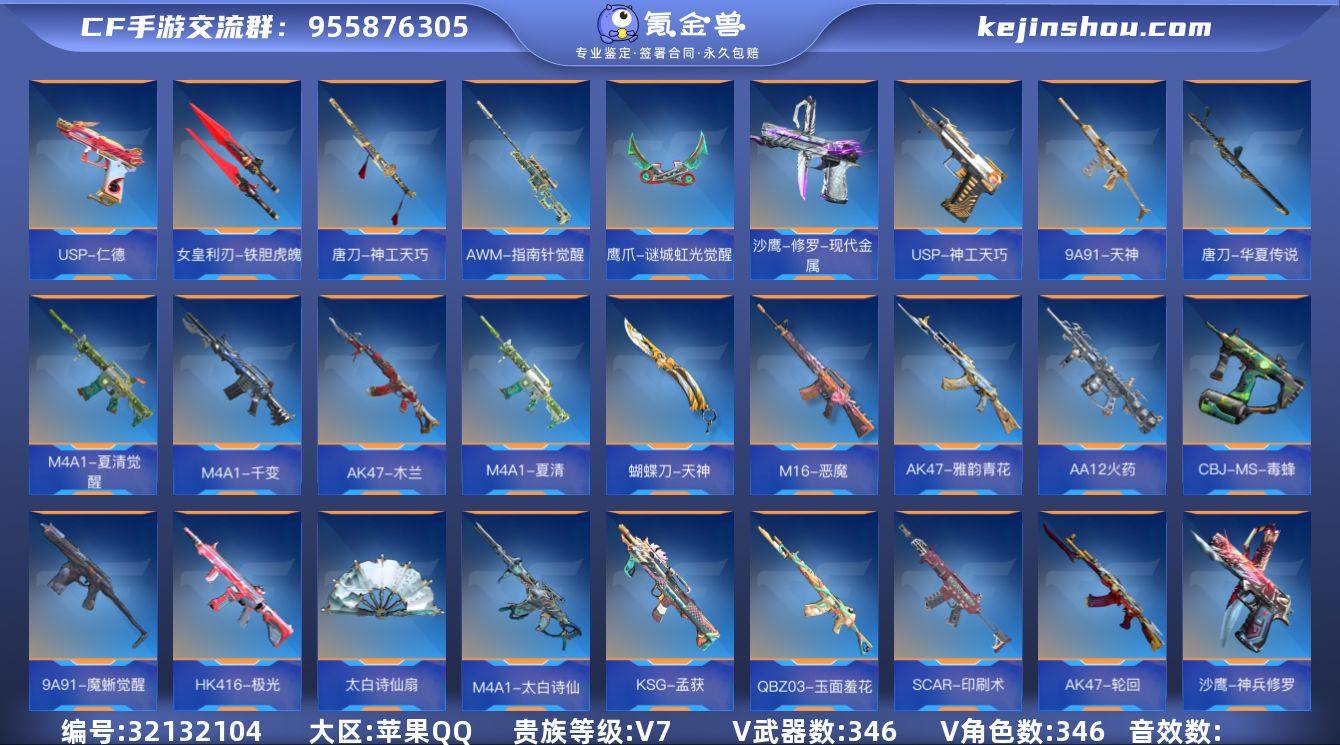 WLQZ509【V7 332v 346金V 王锋 王击 仁德套 孟德 奉先-无双 星象 m4游骑兵-紫魇 COP雷霆2把 COP堕天神2把 王心 王影 王尊 王者幻神带冰皮 王狱带冰皮 王蝶 王魂HS 王隐 王业 仲康套 孟获套】 【等级】143【区服】手Q-苹果 【VIP】7【精通点】5704 【钻石】31365【金币】3070063 【金角色数】9【金武器数】335 【金V角色】零-水下丽影 萝拉 关小雨 蔡文昭 炽天使-X 关小雨 幽灵刀锋-觉醒 祝融夫人 葵 复仇者 【金V武器】女皇利刃-铁胆虎魄 双持斯泰尔-天使 蟒蛇-鼓龙 M4A1-雷神 双持斯泰尔-天使 龙啸 马来剑-毁灭 巴雷特-毁灭 81式-光明之神 沙鹰-修罗 AK47-无影 黄沙残魂剑 QSZ92-天使 龙啸 巴雷特-极光 巴雷特-毁灭 沙鹰-修罗 QSZ92-天使 USP-神罚 AK47-血武士 09式狙-天神 09式狙-天神 M4A1-堕天神 M4A1-运输船 地狱烈炎 屠龙 血月 巴雷特-毁灭 M12S-雷霆 麒麟刺-堕天神 M4A1-黑骑士 血阳 斩魔刀 AK47-风神翼龙 MAC-10-风神翼龙 唐刀-大唐荣耀 QBZ03-死神 沙鹰-火麒麟 AK47-火麒麟 死神手雷 死神烟雾弹 死神闪光弹 M4A1-死神 23-幻神 地狱火 AK47-沙漠郡主-超觉 龙啸-堕天神 SCAR-探星者 巴雷特-毁灭 M200-心动次元觉醒 火麒麟手雷 火麒麟闪光弹 火麒麟烟雾弹 血阳 神罚战斧 USP-仁德 沙鹰-无影 AA12-竞界荣光 手斧-机械迷城 雌雄双股剑 血月 黑武士手雷 战斧-无影 尼泊尔-机械纪元 AK47-木兰 改装GLOCK-木兰 麒麟刺 M4A1-千变 9A91-天神 AK47-血武士 AK47-变色龙 屠龙 雷神手雷 雷神闪光弹 雷神烟雾弹 烟雾弹-雷霆王者 加特林-堡垒 高爆手雷-雷霆 闪光弹-雷霆 烟雾弹-雷霆 黑武士烟雾弹 机械纪元手雷 AK47-雷麒麟 机械纪元烟雾弹 M4A1-雷神 CZS2-血月 双持斯泰尔-天使 QCW05-变形金刚·大黄蜂 秋逸