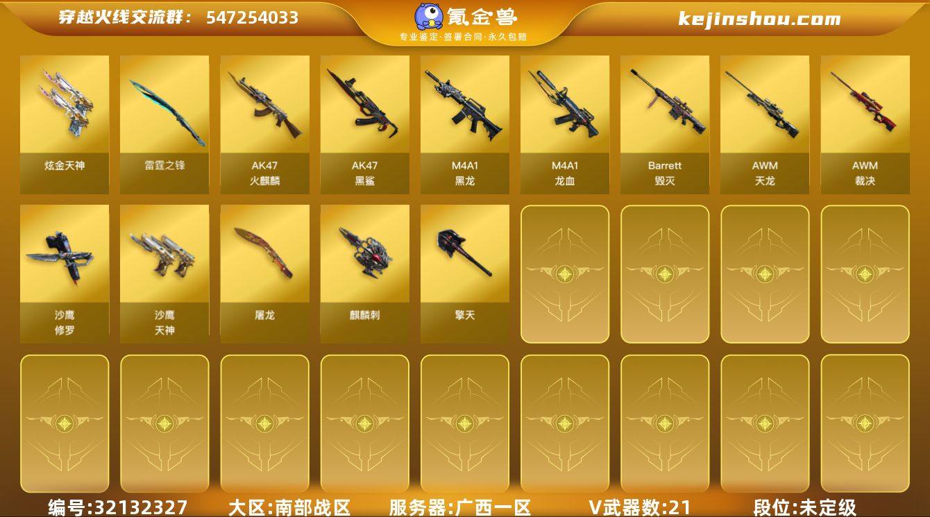 WY522【22V1炫金】【等级】86【区服】广西一区【英雄角色】1【英雄武器】21【炫金级武器】炫金天神【英雄级角色】幻面灵狐【英雄级武器】屠龙-电竞之星 AWM-裁决 AK47-黑鲨 barrett-金色蔷薇 M4A1-龙血 雷霆之锋 高爆手雷-雷霆 烟雾弹-雷霆 闪光弹-雷霆 麒麟刺 擎天 屠龙 沙鹰-修罗 沙鹰-修罗 AK47-火麒麟 沙鹰-天神 沙鹰-修罗 AWM-天龙 Barrett-毁灭 M4A1-黑龙 加特林-炼狱 M200-玄龙 AA12-雪夜奇缘 斯泰尔 AUG A3-雪夜奇缘 Glock18-雪夜奇缘 手雷-雪夜奇缘【源级武器】源.HK417-朱雀-掌火 AN94-竞魂超新星 魂·M4A1-雷神-化蛇 裁决-青叶星芒 灵·龙啸-炫光 AK47-火麒麟-猫爪 源-雷神 III 魂·雷神-维纳斯 源·屠龙 魂·龙啸-秦师 魂·QBZ03·金色蔷薇-序章 魂·雷神-新春神龙 M4A1-青龙-掌上穿越火线 魂·天神-破界 源-毁灭 III 源·雷神 魂·裁决-胜者为王 源·火麒麟 源·天龙 Barrett-极光-掌火 魂·雷神-诺拉 御·毁灭-掌火赤橙 蝴蝶刀-幸运印画 源·擎天-萌杀 魂·龙血-锋芒破茧【挑战级武器】激光毁灭者Ⅲ-网吧专属 M240B-苍雷 末日裁决者 乱世 乱世 乱世 乱世 乱世 征服者 征服者 征服者 征服者 征服者 征服者 征服者 征服者【精英级武器】M14EBR-金牛座 M14EBR-金牛座 M14EBR-金牛座 M...