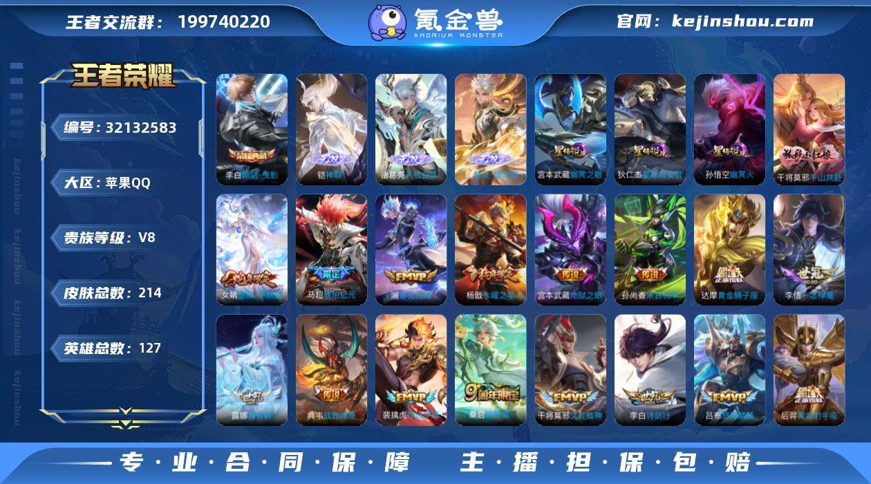 AHC30887,,,,,账号提示风险认证+钱包实名未注销---苹果Q-V8-最强王者段位-127英雄-214皮肤-1典藏皮肤-3无双-21传说-60史诗 【英雄全皮】:敖隐全皮,影全皮 【荣耀典藏】:李白鸣剑曳影 【无双皮肤】:铠神罪,诸葛亮天机白泽,曜器灵螭龙剑 【传说皮肤】:干将莫邪千山共赴,女娲愿照千秋盛,裴擒虎祥瑞亨通,桑启鸣野蒿,典韦战鼓燎原,马超琥珀纪元,澜逐花归海,露娜霜月吟,干将莫邪画中仙,吕布怒海麟威,李白诗剑行,虞姬启明星使,李信一念神魔,干将莫邪久胜战神,达摩黄金狮子座,后羿黄金射手座,杨戬永曜之星,孙尚香末日机甲,宫本武藏地狱之眼,孙悟空地狱火,狄仁杰超时空战士 【限定皮肤】:姜子牙天穹之誓,李白谪仙醉月,狄仁杰阴阳师,赵云皇家上将,高渐离玩趣恶龙,元歌云间偶戏,夏侯惇朔风刀,曹操烛龙,马可波罗暗影游猎,狄仁杰魔术师,狄仁杰万华元夜,项羽海滩派对,老夫子醍醐杖,程咬金演武夺筹,韩信飞衡,花木兰默契交锋,亚瑟潮玩骑士王,牛魔御旌,虞姬启明星使,钟馗驱傩正仪,杨戬永曜之星,干将莫邪冰霜恋舞曲,干将莫邪画中仙,雅典娜单词大作战,雅典娜黎明之约,鬼谷子原初探秘者,百里玄策原初追逐者,弈星混沌棋,明世隐疑决卦,裴擒虎李小龙,裴擒虎擒涛扼浪,米莱狄御霄,盾山御銮,猪八戒西部大镖客,嫦娥拒霜思,蒙犽狂想玩偶喵,鲁班大师探海日志,张良古海寻踪,蒙恬荣光圣徽,鬼谷子天穹祈灯,马超琥珀纪元,姬小满妄想食味,沈梦溪龙舞盛年,刘邦剑破天穹,程咬金群星魔术团,刘备异域游侠 【年限皮肤】:杨戬永曜之星,韩信飞衡,女娲愿照千秋盛 【赛季限定】:曹操烛龙,米莱狄御霄,牛魔御旌,盾山御銮,夏侯惇朔风刀,弈星混沌棋,明世隐疑决卦,老夫子醍醐杖,鬼谷子原初探秘者,狄仁杰万华元夜,程咬金演武夺筹,钟馗驱傩正仪,裴擒虎擒涛扼浪,鲁班...