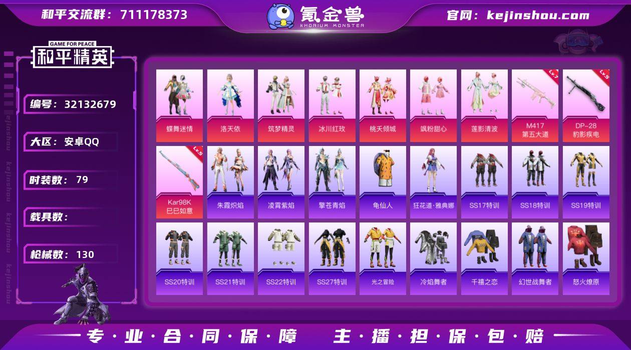 YZJ10976 -可二次 安卓Q-7粉装3特效枪7热门79套装130枪皮 42503热力值 精品小女号 241扭蛋碎片 洛天依 花仙子 莲影清波 齐天大圣飞行器 1印记 历史超级王牌7星 【7粉装】 蝶舞迷情 洛天依 飒粉甜心 莲影清波 筑梦精灵 桃夭倾城 冰川红玫 【3特效枪】 Kar98K-巳巳如意 (5级) DP-28-豹影疾电 (5级) M417-第五大道 (7级) 【7热门】 龟仙人 团圆交子 瑞龙福将 韶华初心 破蛋小黄鸡 M762-瑞龙福将 AUG-魔法学院 【2飞行器】 春暖花开飞行器 齐天大圣飞行器 【1头盔】 深海小丑鱼头盔 营地ID:905571918