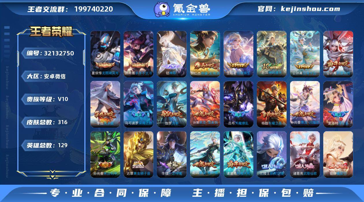 贵族等级:V10 典藏皮肤数:2 珍品无双皮肤数:0 无双皮肤数:1 珍品传说皮肤数:0 传说皮肤数:35 史诗皮肤数:93 皮肤数:316 英雄数:129 段位:荣耀王者 卖家说:【全皮英雄】 夏洛特全皮 影全皮 【典藏】 武则天 无限飓风号 杀手不太冷 【无双】 神罪 【传说】 曦玄引貂蝉 乘龙问璇玑 乘龙淬吴钩 乘龙铭钟鼎 觅芳踪 凤求凰 神骥赴朔漠 神树通天 长夜焕生 云诺千山 启明星使 时雨天司 祈雪灵祝 太华 零号赤焰 默契交锋男 浮生妄 无限倾心女 永曜之星 天魔缭乱 武陵仙君 深海之息 绛天战甲 冠军飞将 一念神魔 云霓雀翎 黄金狮子座 黄金射手座 黄金白羊座 超时空战士男 飞鸢探春 胖达荣荣 仲夏夜之梦 海洋之心 末日机甲女 【热门】万灵启世 巫礼祀神 至尊宝 梅西 冰封战