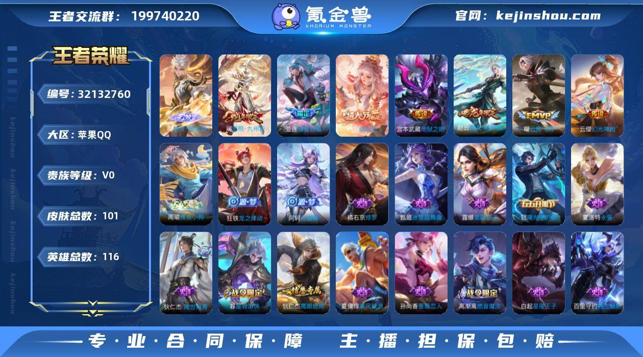 贵族等级:V0 典藏皮肤数:0 珍品无双皮肤数:0 无双皮肤数:1 珍品传说皮肤数:0 传说皮肤数:7 史诗皮肤数:27 皮肤数:101 英雄数:116 段位:星耀