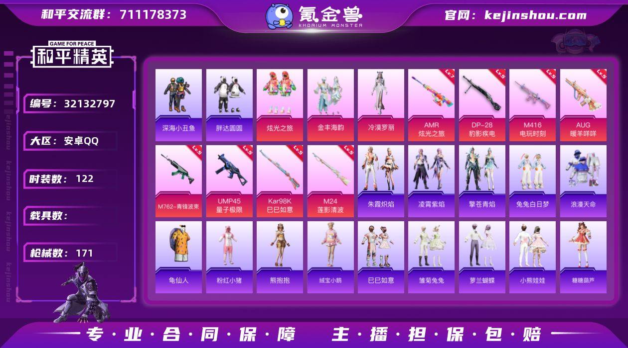 YZJ10948 可二次 安卓Q-【精品素材小女号 8款不重复特效枪 双字ID:茫田 热门衣服:蓝色牛仔衬衣 深海小丑鱼 胖达圆圆 兔兔白日梦 白光莹 青蛙服 熊抱抱 绒宝小鹅 棉花软糖 黑色军官特训上衣 满级大炮炫光 】1稀有3粉装8特效枪10热门122套装171枪皮 48525热力值 6印记 历史卓越王牌12星 【1稀有】 浪漫天命 【3粉装】 金丰海韵 炫光之旅 冷漠罗丽 【8特效枪】 M416-电玩时刻 (5级) Kar98K-巳巳如意 (5级) M762-青锋波束 (5级) DP-28-豹影疾电 (5级) AUG-暖羊咩咩 (5级) UMP45-量子极限 (5级) AMR-炫光之旅 (7级) M24-莲影清波 (5级) 【10热门】 龟仙人 兔兔白日梦 深海小丑鱼 胖达圆圆 暗夜契约 粉红小猪 狂沙舞者 海洋之心 破蛋小黄鸡 极速红龙 【2背包】 甜心宝贝背包 百万伏特背包 营地ID:735323771