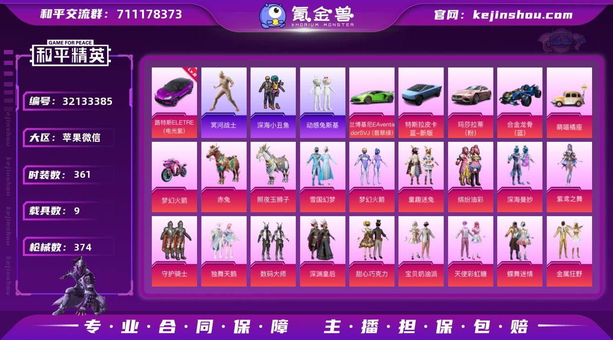苹果 微信-85粉装-28特效枪-9载具-16粉色飞行器-189529热力值-17王牌印记-361套装-374枪皮 【红色载具】:路特斯ELETRE(电光紫)(六级) 【热门品类】:粉装-雪国幻梦,粉装-梦幻火箭,粉装-童趣迷兔,粉装-缤纷油彩,套装-浪漫天命,套装-冥河战士,套装-深海小丑鱼,套装-小丑鱼,套装-动感兔斯基人偶服,角色-忠猛周仓,套装-六号树人,套装-龟仙人,套装-暗影哥特,套装-浪漫波比,大砍刀-青龙偃月刀,撬棍-龙胆亮银枪 【粉色套装】:粉装-深海曼妙,粉装-紫鸢之舞,粉装-守护骑士,粉装-独舞天鹅,粉装-数码大师,粉装-深渊皇后,粉装-甜心巧克力,粉装-宝贝奶油派,粉装-天使彩虹糖,粉装-雪国幻梦,粉装-蝶舞迷情,粉装-梦幻火箭,粉装-金属狂野,粉装-缤纷油彩,粉装-甜蜜誓约,粉装-心之恋语,粉装-极致幻想,粉装-星空之魅,粉装-幻彩马卡龙,粉装-花间之火,粉装-锦绣火鲤,粉装-迷蝶贵族,粉装-星点战士,粉装-冰霜白皇,粉装-童趣迷兔,粉装-炙焰红王,粉装-香水柠檬,粉装-暗翼战神,粉装-绮梦青鸾,粉装-星之彼岸,粉装-相思残雪,粉装-枪炮玫瑰,粉装-蜜桃特工,粉装-蝶舞蔷薇,粉装-暗夜玫瑰,粉装-林间仙鹿,粉装-彩虹鹿灵,粉装-山涧鹿灵,粉装-齐天大圣,角色-洛天依,粉装-海渊国主,粉装-幻情紫藤,粉装-青葱仙萝,粉装-甜心娃娃,粉装-精灵娃娃,粉装-酣梦娃娃,粉装-天之羽翼,粉装-焦糖拿铁,粉装-碧影闪光,粉装-薄荷物语,粉装-百合蜜语,粉装-恐龙拽拽,粉装-橘柚倾心,粉装-冷魅冰骑,粉装-赤焰黑爵,粉装-紫电风暴,粉装-星夜魔法师,粉装-圣光天使,粉装-绒雪飘舞,粉装-傲雪凌霜,粉装-霁雪冰心,粉装-垂柳戏鸭,粉装-彩虹甜喵,粉装-甜蜜草莓,粉装-旋转彩虹,粉装-冰川粉黛,粉装-冰川幽秘,粉装-冰川红玫,粉装-桃夭倾城,粉装-霞光圣骑,粉装-寒光使者,粉装-海螺星光,粉装-...
