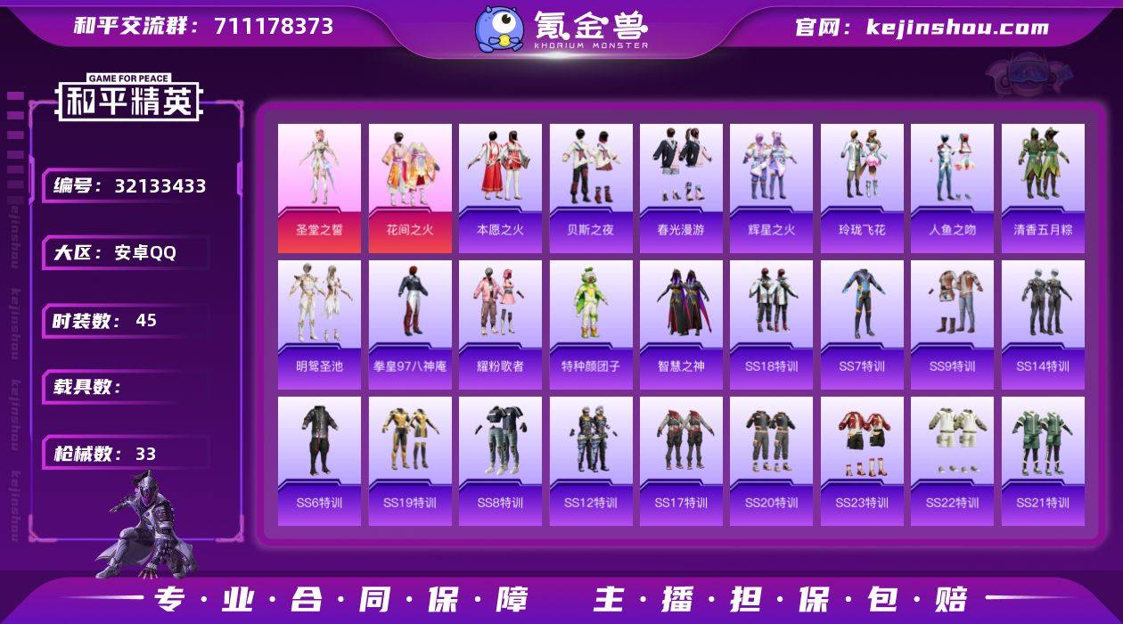 【和平精英】2粉装,3特效枪,0载具,历史最高段位:传奇王牌16星 王牌印记7次 热力值:32904,122套装,101枪械,96装备,54战备;套装:套装-花间之火,角色-圣堂之誓,套装-特训学院,套装-猎鹰,套装-青年教官,套装-橘黑制服,套装-红色运动,套装-黄色运动,套装-蓝色运动,套装-黄色伏地魔,套装-白色伏地魔,套装-黑色伏地魔,套装-竞技名士,套装-深蓝色名流,套装-酒红色名流,套装-湖蓝色名流,套装-黄色名流,套装-猛禽,套装-长空猛禽,套装-竞技勇士朋克,套装-蓝色守护者,套装-雨林探路者,套装-冷焰舞者,套装-灼焰舞者,套装-浪漫天命,套装-战地督导,套装-特殊使命,套装-甜蜜告白,套装-迎春赐吉,套装-潮流先锋,套装-龙腾端午,套装-滨海假日,套装-完美偶像,套装-人气偶像,套装-幻影武者,套装-街头潮人,套装-蓝彩潮人,套装-魅力单车,套装-绮丽涂鸦,套装-耀眼新星,套装-竞技达人朋克,套装-都市漫游者,套装-金羽特工,套装-狂沙舞者,套装-破晓战魂,套装-都市魅力,套装-荣耀,套装-风行保卫者,套装-热血青春,套装-雪山精英,套装-传奇侦探,套装-幻世战舞者,套装-缤纷果语,套装-龙魂突击队,套装-元素星魂,套装-极速红龙,套装-格斗先锋,套装-破蛋小黄鸡,套装-疯狂小兔子,套装-深蓝冒险家,套装-迷域探索者,套装-北国孤狼,套装-SS6特训,套装-拳皇97八神庵,套装-炽焰拳师,套装-格斗专家,套装-奇迹天团,套装-玲珑飞花,套装-跃动心情,套装-SS7特训,套装-霓虹街区,套装-清香五月粽,套装-SS8特训,套装-智慧之神,套装-萌黄之夏,套装-人鱼之吻,套装-夏日音浪,套装-SS9特训,套装-探宝勇士,套装-本愿之火,套装-辉星之火,套装-牛气满满,套装-特种颜团子,套装-战术大师,套装-SS12特训,套装-牛气冲天,套装-SS18特训,套装-耀粉歌者,套装-SS14特训,套装-S...