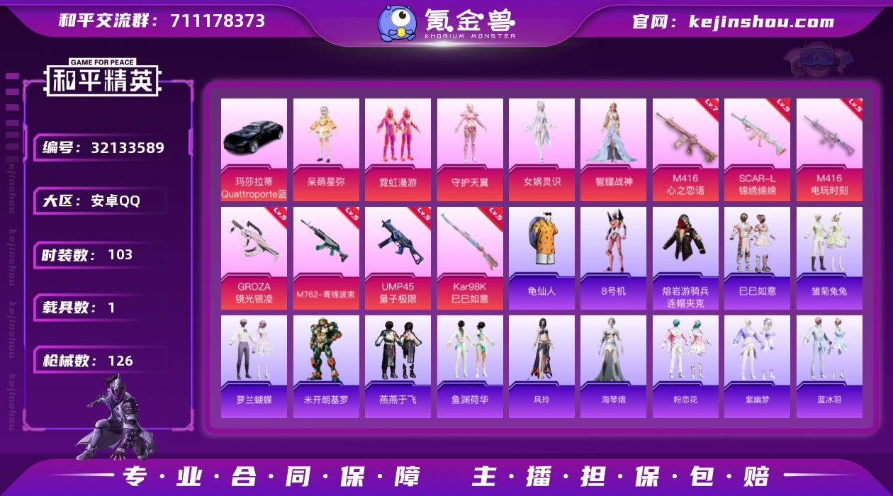 YZJ13125 可二次 安卓Q-1载具5粉装7特效枪4热门103套装126枪皮 39909热力值 精品小女号 满级M4心之恋语 女娲灵识 呆萌星弥 霓虹漫游 兔兔小魔女 破蛋小黄鸡 满级M4电玩时刻 满级斯嘎锦绣绵绵 6印记 历史超级王牌7星 【1载具】 玛莎拉蒂Q蓝色 【5粉装】 女娲灵识 守护天翼 呆萌星弥 霓虹漫游 智耀战神 【7特效枪】 SCAR-L-锦绣绵绵 (5级) M416-心之恋语 (7级) M416-电玩时刻 (5级) Kar98K-巳巳如意 (5级) M762-青锋波束 (5级) UMP45-量子极限 (5级) GROZA-镜光银凌 (5级) 【4热门】 8号机 龟仙人 兔兔小魔女 破蛋小黄鸡 营地ID:925035539