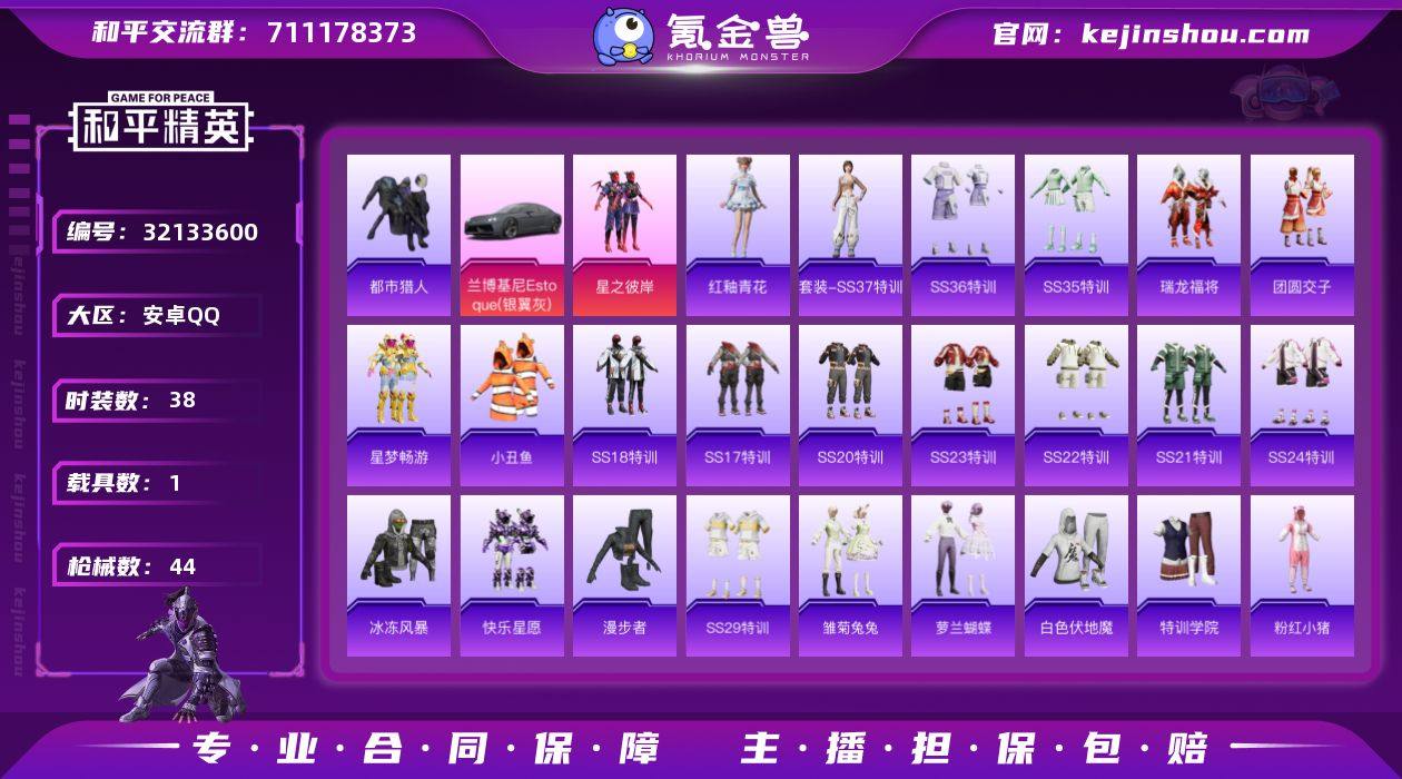 【和平精英】1粉装,5特效枪,1载具,历史最高段位:传奇王牌8星 王牌印记9次 热力值:39614,106套装,150枪械,133装备,73战备;套装:套装-星之彼岸,套装-特训学院,套装-猎鹰,套装-青年教官,套装-蓝色运动,套装-黄色伏地魔,套装-白色伏地魔,套装-黑色伏地魔,套装-竞技名士,套装-湖蓝色名流,套装-黄色名流,套装-猛禽,套装-长空猛禽,套装-漫步者,套装-海岛探路者,套装-旭日情侣,套装-冷焰舞者,套装-都市猎人,套装-浪漫天命,套装-特战装甲,套装-战地菁英,套装-春日漫步,套装-滨海假日,套装-暗黑骑手,套装-鹰眼刺客,套装-冰冻风暴,套装-完美偶像,套装-人气偶像,套装-街头潮人,套装-暗金炫舞,套装-魅力单车,套装-绮丽涂鸦,套装-耀眼新星,套装-野性战心,套装-破晓战魂,套装-荣耀,套装-幻世战舞者,套装-甜蜜熊情侣,套装-青涩时光,套装-缤纷果语,套装-冰川特警,套装-麻辣教官,套装-小丑鱼,套装-梦魇先生,套装-粉红小猪,套装-破蛋小黄鸡,套装-探宝勇士,套装-牛气满满,套装-战术大师,套装-狙击之神,套装-SS18特训,套装-快乐星愿,套装-星梦畅游,套装-SS17特训,套装-瑞龙福将,套装-团圆交子,套装-虎虎生威吉莉,套装-SS20特训,套装-SS21特训,套装-玉兔迎春,套装-SS22特训,套装-光之冒险,套装-SS23特训,套装-王牌教练,套装-柠萌假日,套装-SS24特训,套装-锦衣飞扬,套装-龙的传人,套装-漫游都市,套装-恋语绒绒,套装-SS28特训,套装-海盐绵绵冰,套装-蝶变,套装-SS29特训,套装-雏菊兔兔,套装-萝兰蝴蝶,套装-异域银装,角色-都市丽猫,套装-SS30特训,套装-青团波波,套装-糖糖葫芦,套装-摩登天骄,套装-SS31特训,套装-鱼渊荷华,套装-燕燕于飞,套装-智谋强哥,套装-SS33特训,套装-巳巳如意,套装-SS32特训,套装-青翼流星,套装-顶瓜瓜,套装-狂...