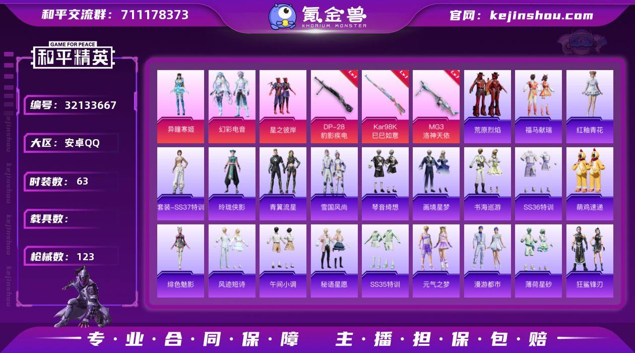 【满级MG3洛神天依5特效枪3粉装 秒换绑不用等】 安卓Q区-32664热力值-63套装-123枪皮 【3粉装】 星之彼岸 角色-异瞳寒姬 幻彩电音【5特效枪】 Mk14-福马献瑞(5级) ACE32-萌骑漫游(5级) MG3-洛神天依(7级) Kar98K-巳巳如意(5级) DP-28-豹影疾电(5级)【138热门】 Mk47-洛神天依 SCAR-L-玉兔迎春 Mk47-乌木金纹 UMP45-蓝色火焰 MG3-幻世战舞者 AKM-星之彼岸 长空猛禽 魅力单车 漫步者 黄色伏地魔 S1897-糯团青竹 AA12-G-雨过天青 M24-樱桃泡泡 沙漠之鹰-雨过天青 平底锅-画境星梦 P90-紫矿核心 GROZA-紫矿核心 玲珑侠影 M16A4-雨过天青 AC-VAL-荒原烈焰 顶瓜瓜 雨过天青 MG-36-薄荷星砂 GROZA-福马献瑞 SS34特训 漫游都市 朱霞炽焰 蜜獾-鸡智如我 星影赞美诗 撬棍-冰晶雪宝 福马献瑞 大橘大利 SS21特训 凌霄紫焰 蓝冰羽 破片手榴弹-爆破雪人 ACE32-冰晶雪宝 青翼流星 SS31特训 SS33特训 SS32特训 紫幽梦 极速光影 绯色魅影 雪绒豹 狂鲨锋刃 SS36特训 瑰梦爱神 异域银装 战术大师 JS9-凌霄紫焰 MG-36-凌霄紫焰 蜜獾-启元战纹 马上有钱 ARX-凌霄紫焰 云朵鹅 短管霰弹-星穹咏叹调 G36C-星穹咏叹调 P92-凌霄紫焰 撬棍-冷漠罗丽 平底锅-凌霄紫焰 狙击之神 AKM-彩虹符号 破片手榴弹-海盐豹豹 UMP45-海盐豹豹 Mk14-紫晶流影 幻世保卫者 M417-玩趣呆呆 Mk14-薄荷星砂 AUG-紫晶流影 AMR-鸡智如我 MG3-乌木金纹 燃烧瓶-福马献瑞 PKM-紫幽梦 Mk14-冰河战士 ACE32-画境星梦 M1加兰德-画境星梦 琴音绮想 Mk14-紫幽梦 AKM-涂鸦街区 爆炸猎弓-喜羊羊与灰太狼 AKS-74U-鸡智如我 UZI-冰河战士 烟雾弹-冰氧夏日 SCAR-L-彩虹符号 平底锅-属我最6 SS35特训 S1897-紫幽梦 P92-紫幽梦 薄荷星砂