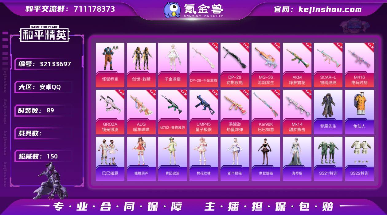 YZJ13155 可二次 安卓Q-3粉装13特效枪3热门 极品身法小号 带地铁 绝世1 小丑 千金淑猫 多款不重复特效满级特效 m4电玩满级 aug暖羊满级 89套装150枪皮 42954热力值 14印记 历史绝世王牌16星 【3粉装】 千金淑猫 怪诞乔克 创世救赎 【13特效枪】 SCAR-L-锦绣绵绵 (5级) M416-电玩时刻 (5级) AKM-绿萝繁花 (5级) Kar98K-巳巳如意 (5级) M762-青锋波束 (5级) MG-36-沧焰双生 (5级) DP-28-千金淑猫 (6级) DP-28-豹影疾电 (5级) AUG-暖羊咩咩 (5级) UMP45-量子极限 (5级) Mk14-甜梦熊击 (5级) GROZA-镜光银凌 (5级) 汤姆逊-热量炸弹 (5级) 【3热门】 龟仙人 梦魇先生 破蛋小黄鸡 【1飞行器】 黄族统领飞行器 【1背包】 金风玉露背包 营地ID:932081469