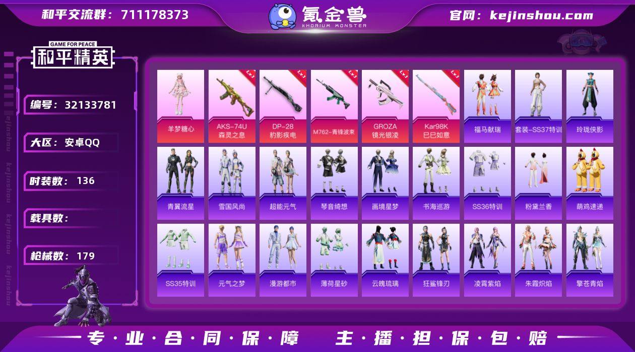 【深海小丑鱼7特效枪1粉装 秒换绑不用等】 安卓Q区-49785热力值-136套装-179枪皮 【1粉装】 角色-羊梦糖心【7特效枪】 AKS-74U-森灵之息(5级) Mk14-福马献瑞(5级) ACE32-萌骑漫游(5级) M762-青锋波束(5级) Kar98K-巳巳如意(5级) GROZA-镜光银凌(5级) DP-28-豹影疾电(5级)【184热门】 鹰眼刺客 破蛋小黄鸡 深海小丑鱼 极速红龙 白色伏地魔 SS27特训 SS25特训 SS24特训 SS23特训 SS22特训 AKM-缤纷海域 SCAR-L-玉兔迎春 M762-天降萌叽 M762-彩虹符号 Mk47-乌木金纹 UMP45-蓝色火焰 DBS-彩虹符号 M249-彩虹符号 呆萌铁蟹 M416-蓝色火焰 GROZA-彩虹符号 长空猛禽 夏日倾情 特训学院 青涩时光 青年教官 牛气冲天 妙红点点 魅力单车 猎鹰 蓝色运动 橘黑制服 竞技达人朋克 活力之心 黄色运动 漫步者 黄色伏地魔 红色运动 黑色伏地魔 海岛探路者 春日漫步 S1897-糯团青竹 平底锅-画境星梦 P90-紫矿核心 GROZA-紫矿核心 玲珑侠影 SPAS-12-福马献瑞 MG-36-薄荷星砂 GROZA-福马献瑞 恋语绒绒 SS34特训 漫游都市 朱霞炽焰 撬棍-冰晶雪宝 AWM-天降萌叽 怀庆长公主 福马献瑞 大橘大利 超能元气 SS20特训 SS21特训 凌霄紫焰 龙魂突击队 SS29特训 破片手榴弹-爆破雪人 SS30特训 ACE32-冰晶雪宝 鱼渊荷华 擎苍青焰 青翼流星 SS28特训 M24-天降萌叽 PKM-啾咪啾咪 海盐绵绵冰 M16A4-冰河战士 燕燕于飞 SS31特训 SS33特训 SS32特训 巳巳如意 游乐 MG3-霓彩脉冲 粉黛兰香 狂鲨锋刃 SS36特训 MG3-火熔核心 异域银装 Vector-突变脉冲 智谋强哥 战术大师 JS9-凌霄紫焰 MG-36-凌霄紫焰 马上来财 蜜獾-启元战纹 ARX-凌霄紫焰 暗黑骑手 P92-凌霄紫焰 平底锅-凌霄紫焰 狙击之神 AKM-彩虹符号 AKS-