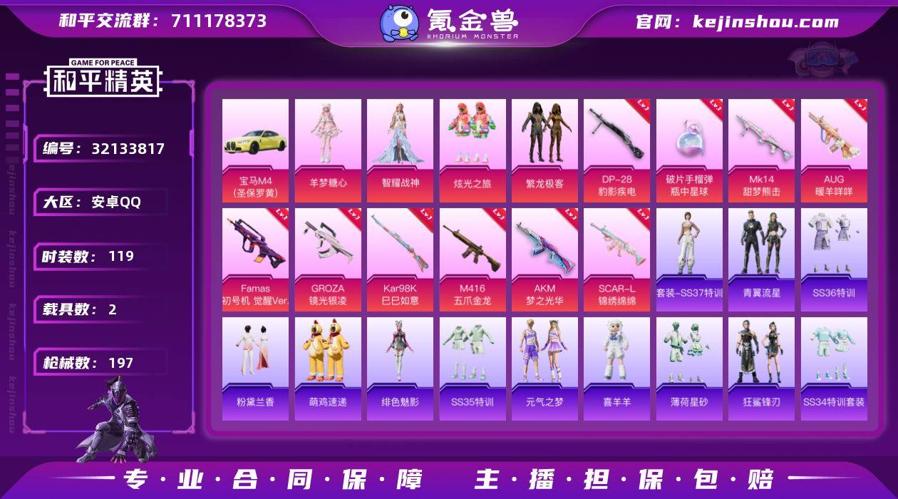 【满级M4五爪金龙10特效枪4粉装2载具 秒换绑不用等】 安卓Q区-61400热力值-119套装-197枪皮 【2载具】 路特斯EV黄色 宝马M4(圣保罗黄)【1稀有】 Mark.06蓝螳螂【4粉装】 炫光之旅 繁龙极客 角色-智耀战神 角色-羊梦糖心【10特效枪】 M416-五爪金龙(7级) AKM-梦之光华(6级) SCAR-L-锦绣绵绵(5级) Kar98K-巳巳如意(5级) 破片手榴弹-瓶中星球(7级) Mk14-甜梦熊击(5级) AUG-暖羊咩咩(5级) GROZA-镜光银凌(5级) DP-28-豹影疾电(5级) Famas-初号机 觉醒Ver.(7级)【180热门】 破蛋小黄鸡 白色伏地魔 SS27特训 SS26特训 SS25特训 SS24特训 SS23特训 SS22特训 SCAR-L-玉兔迎春 GROZA-田园牧歌 M762-天降萌叽 M762-彩虹符号 Mk47-乌木金纹 SKS-糯团青竹 UZI-娇憨猪猪 M249-彩虹符号 MG3-幻世战舞者 GROZA-彩虹符号 QBZ-妙趣可丽 长空猛禽 虚音幻奏 甜心亚梦 青涩时光 牛气冲天 霓虹街区 妙红点点 梦幻奶油 懵萌河马 魅力单车 黑色伏地魔 海岛探路者 纯真浪花 汤姆逊-智耀战神 S1897-糯团青竹 MK20-H-樱桃泡泡 GROZA-紫矿核心 顶瓜瓜 冰河战士 MG-36-薄荷星砂 恋语绒绒 SS34特训 蜜獾-鸡智如我 星影赞美诗 撬棍-冰晶雪宝 突击盾牌-初号机 觉醒Ver. 暗影刺翼 大橘大利 彩虹兔 SS19特训 SS20特训 SS21特训 蓝冰羽 龙魂突击队 SS29特训 破片手榴弹-爆破雪人 SS30特训 ACE32-冰晶雪宝 鱼渊荷华 青翼流星 SS28特训 PKM-啾咪啾咪 石蕴玉辉 海盐绵绵冰 M16A4-冰河战士 燕燕于飞 SS31特训 SS33特训 SS32特训 紫幽梦 极速光影 绯色魅影 雪绒豹 MG3-霓彩脉冲 粉黛兰香 狂鲨锋刃 曼妙人鱼 SS36特训 热情海星 老实芭蕉 异域银装 粉恋花 战术大师 云朵鹅 GROZA-荧海星豚 短管霰弹-星穹咏叹