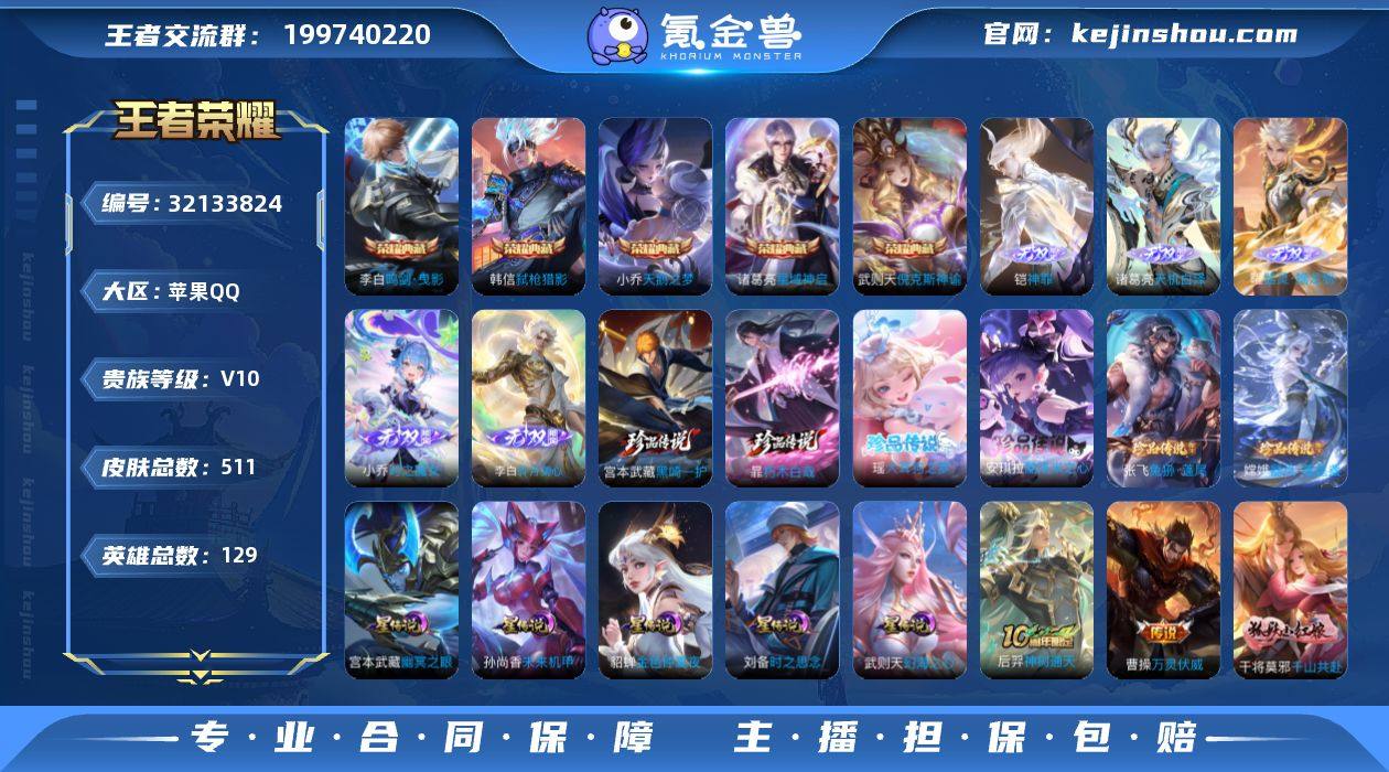 可二次【V10 511皮肤6典藏5无双5星元6珍品88传说2天幕3金标 秒换绑不用等】苹果Q-129英雄【6水晶】武则天 弑枪猎影 星域神启 鸣剑·曳影 天鹅之梦 倪克斯神谕【5无双】碎月剑心 时之魔女 神罪 天机白泽 器灵·螭龙剑【5星元】金色仲夏夜之梦 未来机甲 幻海之心 幽冥之眼 时之思念【6珍品传说】酷洛米之心 大耳狗之梦 兔狲·蓬尾 黑崎一护 朽木白哉 器灵·落星盏【88传说】神树通天 万灵伏威 云诺千山 愿照·众生和 愿照·山河定 愿照·福禄聚 愿照·岁时盈 愿照·九州拓 愿照·千秋盛 时之祈愿 死亡执政官 诡秘之主 千山共赴 九山相柳 曦玄引 金乌负日 霜月吟 觅芳踪 逐花归海 琥珀纪元 续相思 鸣野蒿 冥王哈迪斯 妄想奇谈 云鹰飞将 鹤羽星尊 灼幽烈阳 记忆之芯 无限倾心 炽翼辉光 山海·苍雷引 山海·琳琅生 浮生妄 齐天大圣 山海·炽霜斩 星穹之声 诗剑行 神器·狴犴令 绯月行 碎云 枫霜尽 前尘镜 音你闪耀 深海之息 无双飞将 黄金狮子座 超时空战士 仲夏夜之梦 猫影幻舞 久胜战神 祈雪灵祝 地狱之眼 武圣 玄雷天君 黄金射手座 冠军飞将 炽阳神光 绛天战甲 默契交锋 凤求凰 一念神魔 飞鸢探春 时之恋人 胖达荣荣 末日机甲 地狱火 零号·赤焰 海洋之心 游龙清影 永曜之星 云霓雀翎 启明星使 黄金白羊座 音你心动 武陵仙君 时雨天司 怒海麟威 乘龙·问璇玑 乘龙·淬吴钩 乘龙·铭钟鼎 幻光神枪 祥瑞亨通 星之鸣奏 战鼓燎原 落雪白狼 群星魔术团【156史诗】飞衡 雪豹·霜爪 九幽镇关 守夜人 巫礼祀神 罗小黑战记 至尊宝 龙之律动 乘龙·忆丹青 乘龙·聚宝船 星界战将 雪夜绮愿 燃音魔法 江河有灵 地狱燃心 天穹祈灯 逐霄战戟 赞萌露比 石田雨龙 灵蛊蚀心 逆浪荇歌 东方月初 涂山红红 埋骨钱 飞车小橘子 百相守梦 幻珠鲛人 器灵·浮梦炉 狼魂孤将 奇幻香踪 完美假期 织梦人 山海·碧波行 匿光破解者 星界游侠 涂山容容 顽趣 驭风魔法 梦圆繁...