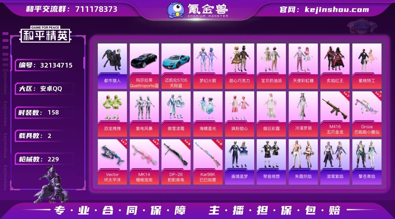 YZJ15132-可二次-安卓Q-2稀有2载具13粉装8特效枪15热门158套装229枪皮 73586热力值 精品小身法号 300多天精英特权卡 473扭蛋碎片未使用 新火箭少女 巧克力三姐妹 烟云彩露 傲雪凌霜 恐龙拽拽 都市 天命 鲨鱼服 马上来财 花园小羊咩 满级M4五爪 满级狗砸巴啦啦小魔仙 满级Mk14樱桃泡泡 满级维克多环太平洋 8印记 历史超级王牌9星 【2稀有】 都市猎人 浪漫天命 【2载具】 玛莎拉蒂Q蓝色 迈凯伦570S天际蓝 【13粉装】 梦幻火箭 宝贝奶油派 天使彩虹糖 甜心巧克力 烟云彩露 冷漠罗丽 飒粉甜心 炙焰红王 傲雪凌霜 海螺星光 紫电风暴 蜜桃特工 恐龙拽拽 【8特效枪】 M416-五爪金龙 (7级) Kar98K-巳巳如意 (5级) DP-28-豹影疾电 (5级) Mk14-樱桃泡泡 (7级) GROZA-巴啦啦小魔仙 (7级) Mk14-福马献瑞 (5级) ACE32-萌骑漫游 (5级) Vector-环太平洋 (7级) 【15热门】 龟仙人 呆萌铁蟹 鹰眼刺客 恶魔喵喵 迅捷狂鲨 梦起落英 纯白誓言 豚鼠丹丹 忍者信条 漫步者 破蛋小黄鸡 军刀雅典娜 英勇保护者 AKM-奇异狩猎者 GROZA-林间仙鹿 【3头盔】 童趣迷兔头盔 梦幻火箭头盔 甜心宝贝头盔 【2背包】 深海小丑鱼背包 甜蜜誓约背包 营地ID:928036133