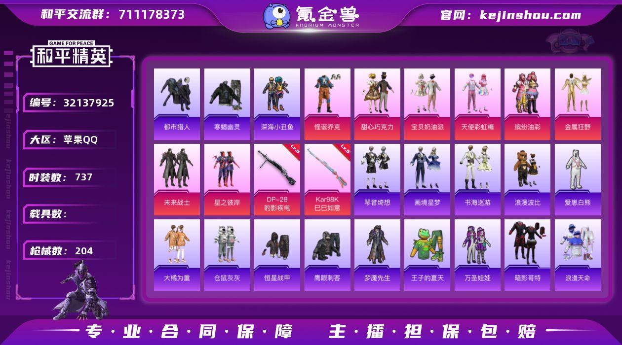 【特价出售】钱包不能注销苹果Q-3稀有8粉装4特效枪24热门180套装204枪皮 63305热力值 27印记 历史无敌战神 【3稀有】 寒蝎幽灵 都市猎人 浪漫天命 【8粉装】 宝贝奶油派 天使彩虹糖 甜心巧克力 怪诞乔克 金属狂野 缤纷油彩 未来战士 星之彼岸 【4特效枪】 Kar98K-巳巳如意 (5级) DP-28-豹影疾电 (5级) Mk14-福马献瑞 (5级) UMP45-萌骑冒险 (5级) 【24热门】 龟仙人 浪漫假日 青涩年华 仓鼠灰灰 雪山精英 动感兔斯基 爱崽白熊 梦魇先生 万圣娃娃 鹰眼刺客 深海小丑鱼 大橘为重 浪漫波比 TianBa战队服 暗影哥特 SS1特训 粉红小猪 忍者信条 漫步者 破蛋小黄鸡 风华少年志 极速红龙 M416-仓鼠灰灰 M762-奇异狩猎者 【3头盔】 国宝胖达头盔 甜心宝贝头盔 幻影战神头盔 【5背包】 仓鼠灰灰背包 甜心宝贝背包 幻影战神背包 萌熊伴侣背包 夏日绵绵冰背包