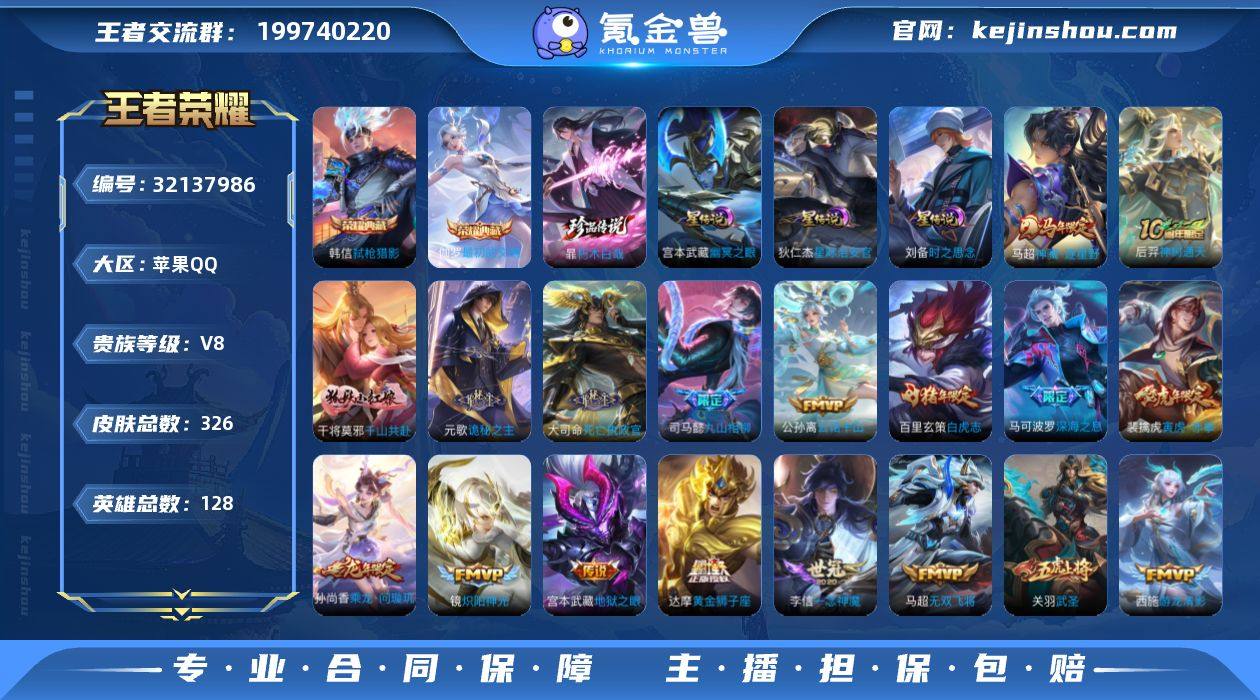 贵族等级:V8 典藏皮肤数:2 珍品无双皮肤数:0 无双皮肤数:0 珍品传说皮肤数:1 传说皮肤数:26 史诗皮肤数:97 皮肤数:326 英雄数:128 段位:无双王者