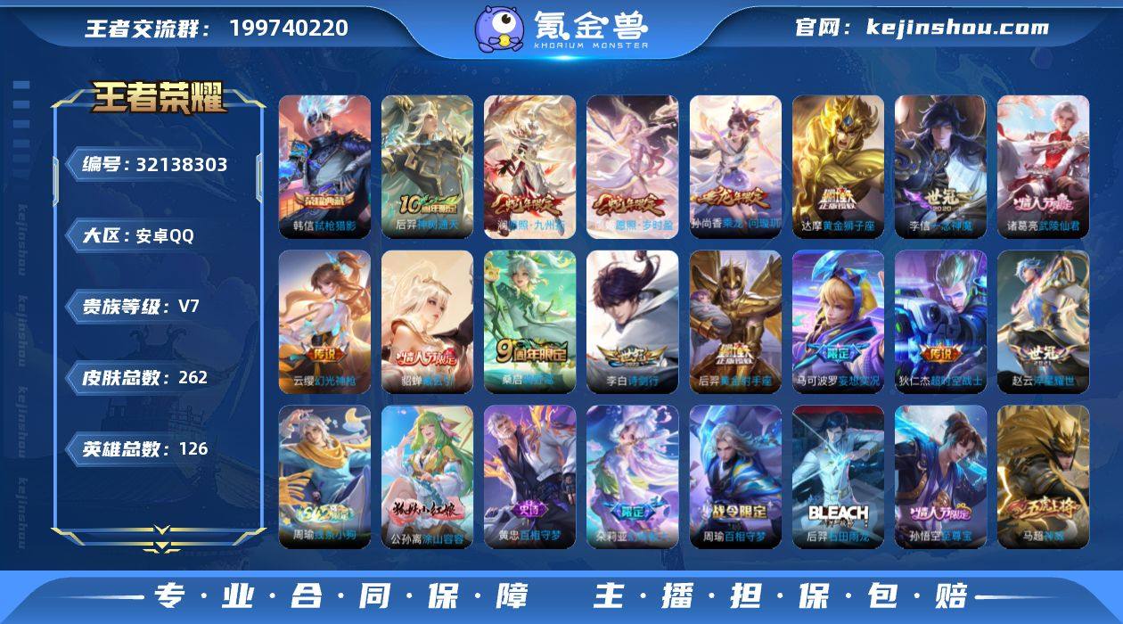 编号98336 可二次V7 262皮肤 1典藏 15传说 弑枪猎影 至尊宝 神威 愿照·九州拓 愿照·岁时盈 武陵仙君 妄想实况 貂蝉-曦玄引 乘龙·问璇玑 陌上桑 孙行者 飞衡 朱雀志 幻珠鲛人 幻光神枪 诗剑行 一念神魔 黄金射手座 狄仁杰-超时空战士 鸣野蒿 淬星耀世 黄金狮子座 逐浪之夏 万物之道 玩趣恶龙 无心 暗影游猎 云间偶戏 蔷薇恋人 航海奇遇记 街头霸王 黄金分割率 乱世虎臣 李