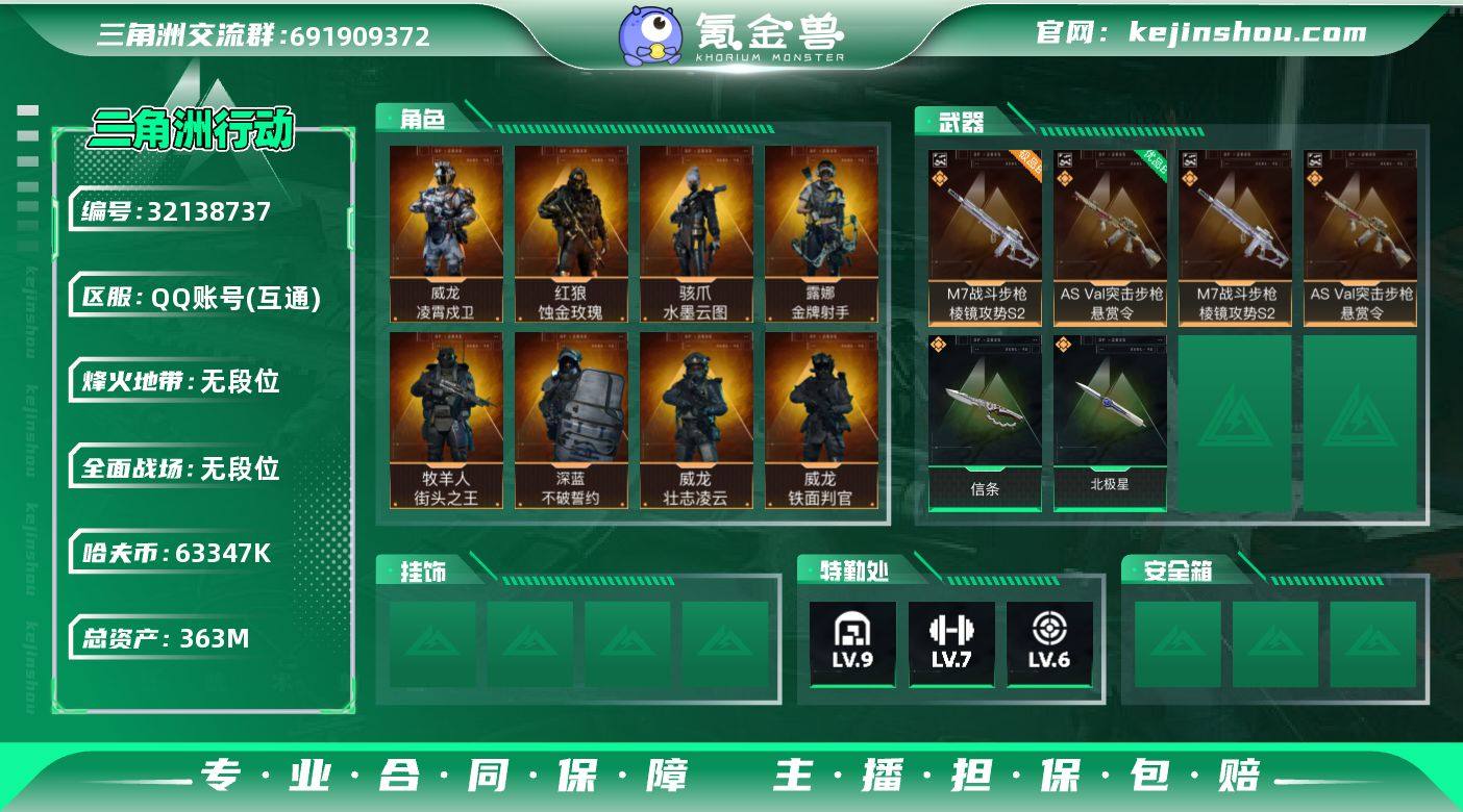 LJ5915两把极品BM7棱镜公式一把优品B悬赏令总资产362.6M哈弗63347K近战武器-北极星,近战武器-信条威龙凌霄戍卫,威龙壮志凌云,威龙铁面判官,红狼蚀金玫瑰,骇爪水墨云图,牧羊人街头之王,蜂医送葬人无题密令,无名夜鹰,深蓝不破誓约,露娜金牌射手M7战斗步枪-棱镜攻势S2(极品B),ASVal突击步枪-悬赏令(优品B)无AW子弹68发三角币38仓库LV.9S8顶级安全箱靶场LV.6训练中心LV.7无,威龙-凌霄戍卫,威龙-壮志凌云,威龙-铁面判官,红狼-蚀金玫瑰,骇爪-水墨云图,牧羊人-街头之王,蜂医-送葬人·无题密令,无名-夜鹰,深蓝-不破誓约,露娜-金牌射手,近战-北极星,近战-信条,M7战斗步枪-棱镜攻势S2,AS Val突击步枪-悬赏令,M7战斗步枪-棱镜攻势S2(极品B),AS Val突击步枪-悬赏令(优品B)