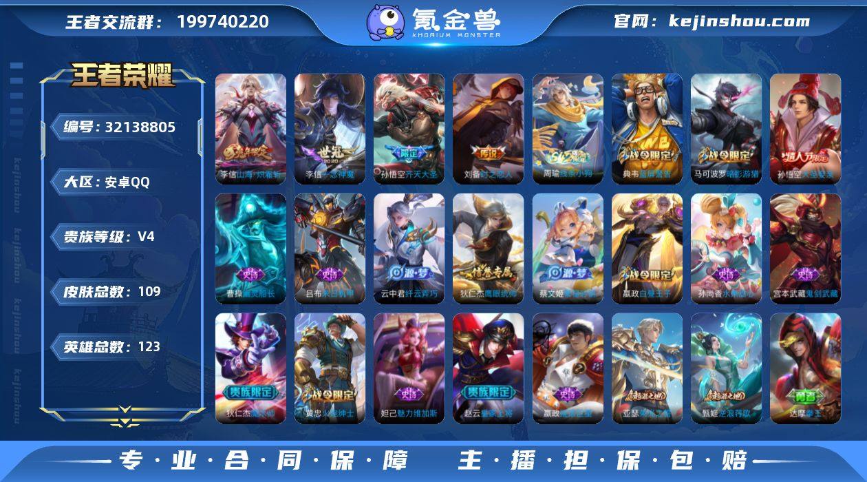 李信一念神魔和23年限定,106个皮肤 16个史诗4个传说 可接受较大幅度砍价
