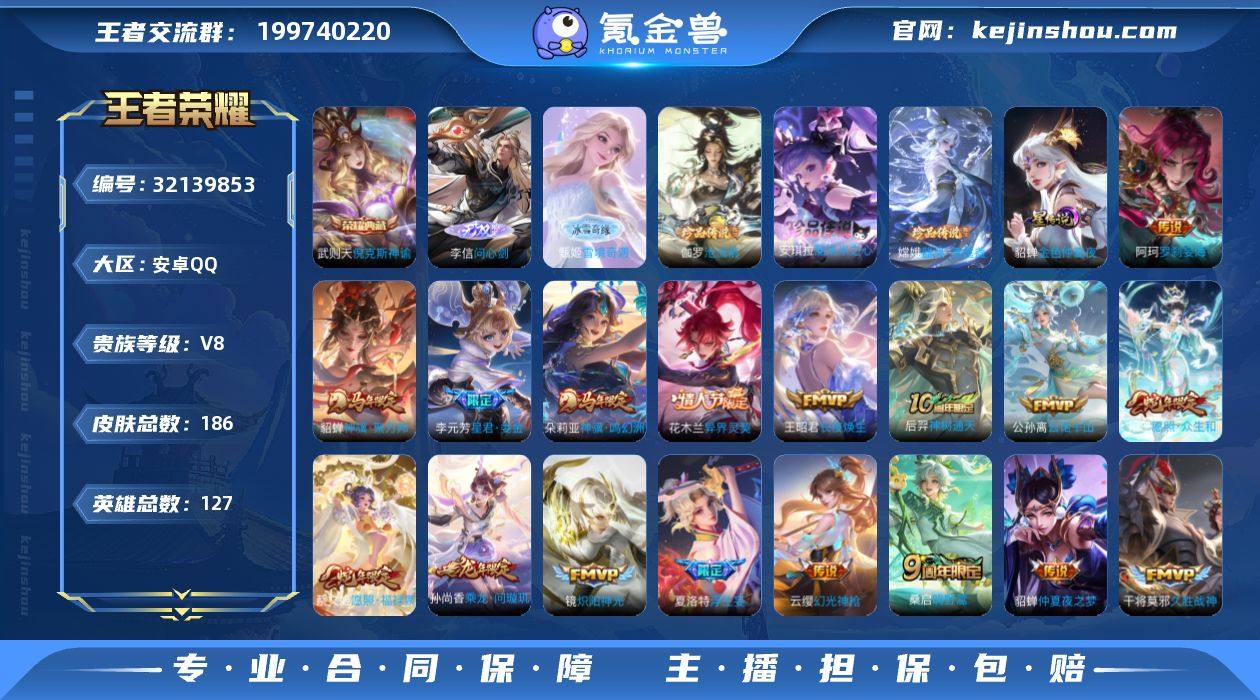 贵族等级:V8 典藏皮肤数:1 珍品无双皮肤数:0 无双皮肤数:2 珍品传说皮肤数:3 传说皮肤数:22 史诗皮肤数:69 皮肤数:186 英雄数:127 段位:钻石 卖家说:一典藏,俩无双,三珍品传说,两天幕