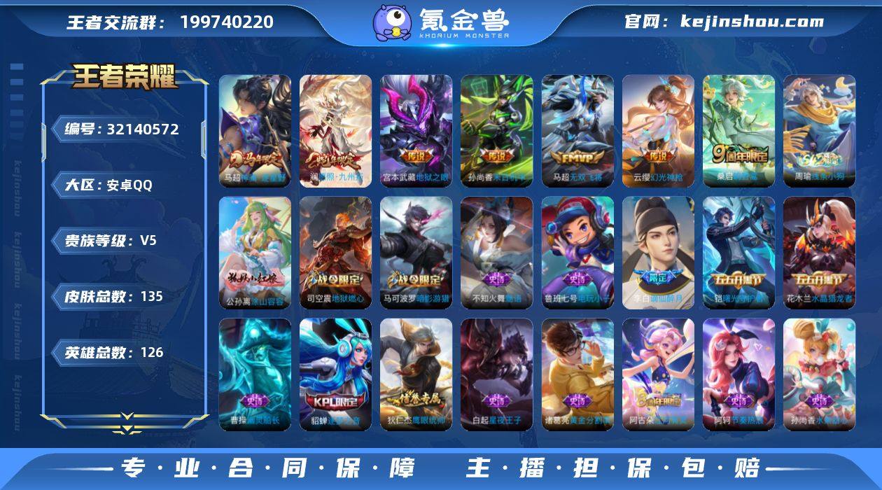 【WZYH939】贵族5/皮肤135/传说7/史诗31/英雄126/孙权全皮/马超神骥逐星野/愿照·九州拓/幻光神枪/鸣野蒿/无双飞将/末日机甲-孙尚香/地狱之眼/天穹之誓(s36)/谪仙醉月/阴阳师/皇家上将/暗影游猎/海滩派对/逐梦之音/胡桃夹子/黎明之约/华丽摇滚/探海日志(s32)/流音漫舞/地狱燃心/江河有灵/古海寻踪(s33)/蒙恬荣光圣徽/鬼谷子天穹祈灯(S34)/龙武盛年/剑破天穹(s35)/程咬金群星魔术团/熔金海岸/噬灭天穹(s37)/谧流熔炉/虚灵犬护/逆浪荇歌/星界战将/茶境仙/访茗客/线条小狗-周瑜/涂山容容/热力回旋/魅语/鹰眼统帅/节奏热浪/星夜王子/逐浪之夏/天才门将/曙光守护者/黄金分割率/缤纷独角兽/水晶猎龙者/幽灵船长/金属风暴/魅力维加斯/暗夜贵公子/水果甜心/鬼剑武藏/地狱岩魂/偶像歌手/电玩小子/兰陵王雾影缉谜/径山谋武/克喵/踏浪烽翎/死霸装/布丁狗之约/灵野札记/春野闲踪/浪漫序章/玫蓝誓约/景韶洛都/星梦巡礼/铁骨偃魂/苍林狼骑/逐霄战戟/暗都幽影/春野之旅/功夫炙烤/时空谍影/完美运算/热血海滩/妄想特派/西部游侠/劲辣红锅/潮玩探月行/危途狂花/蔚蓝守将/无双福将/乓乓大师/特工战影/次元突破/鲨炮海盗猫/野性能量/敏锐之力/沉稳之力/功夫老勺/幻想奇妙夜/龙腾万里/万象初新/花好人间/兔女郎/死亡骑士/黄金武士/玩偶对对碰/未来纪元-宫本武藏/救世之瞳/化身博士/白色死神/忍·炎影/白执事/爱心护理/街头霸王/画中游/碧珀绯影/前尘/赤焰之缨/启蛰/冰刃幻境/幸存者/荷鲁斯之眼/灼热之刃/魇语军师/午夜歌剧院/踏雪寻梅/街头旋风/尼罗河女神/美梦成真/爱与和平/威尼斯狂欢/埃及法老/激情绿茵/范海辛/隐刃/西部大镖客-孙悟空/万圣前夜/锦衣卫/绯红之刃/福禄兄弟