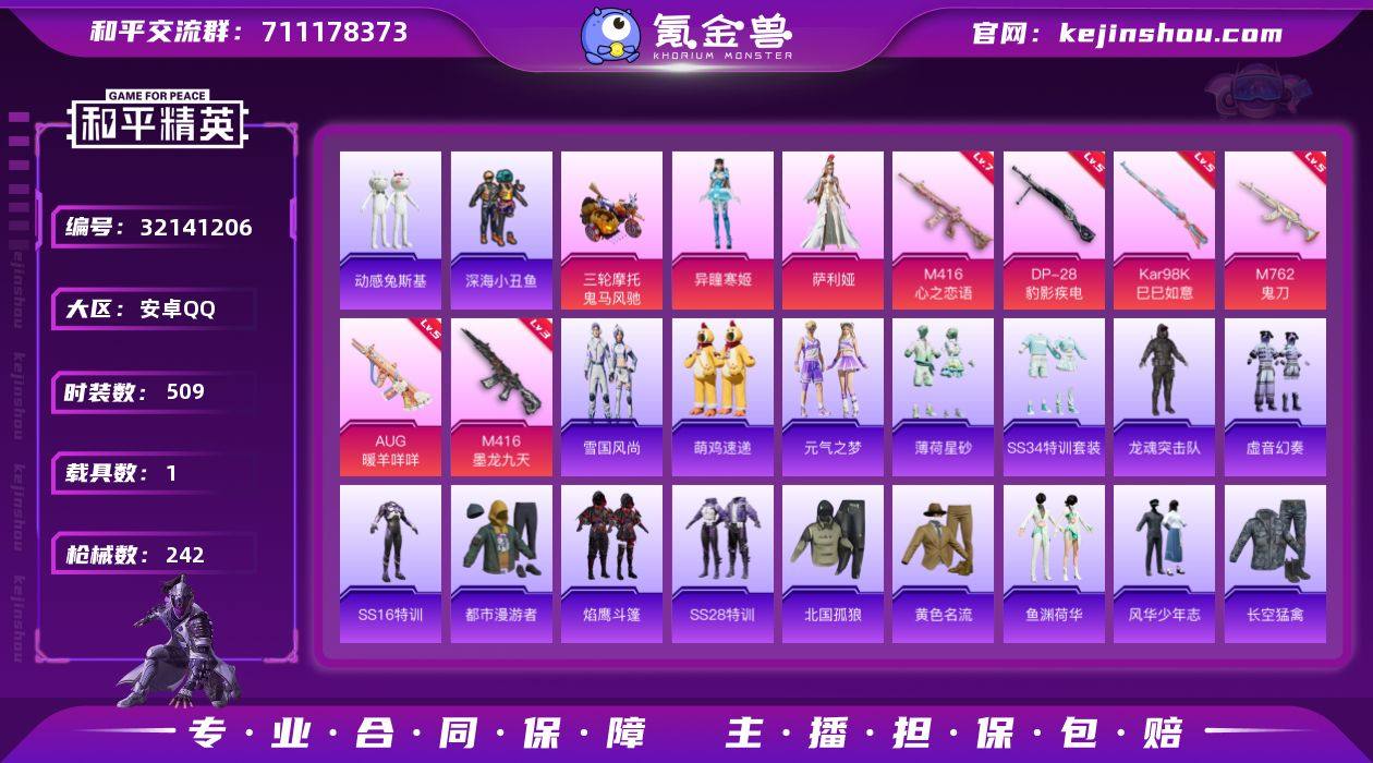 实名:可二次实名 是否支持人脸包赔:支持 粉装数量:2 特效枪数量:6 载具数:1 时装数:509 枪械数:242 动感兔斯基,深海小丑鱼 异瞳寒姬,萨利娅 七级M416-心之恋语,五级DP-28-豹影疾电,五级AUG-暖羊咩咩,五级Kar98K-巳巳如意,五级M762-鬼刀,三级M416-墨龙九天 鬼马风驰 雪国风尚,萌鸡速递,元气之梦,薄荷星砂,SS34特训套装,缤纷果语,北国孤狼,冰河战士,春光漫游,雏菊兔兔,长空猛禽,纯真浪花,顶瓜瓜,动感兔斯基,蝶变,大橘大利,大橘为重,呆萌铁蟹,都市魅力,都市漫游者,电音精灵,风玲,风华少年志,福星高照,飞行日记,龟仙人,虎虎生威吉莉,湖蓝色名流,湖畔霞光,海琴烟,灰色格斗者,黄色名流,幻世战舞者,和煦暖阳,幻羽潜行,娇憨猪猪,击剑大师,竞技名士,竞技勇士朋克,吉莉礼服,极速红龙,街头潮人,街头风暴,街舞达人,机械征服者,酷潮明星,快闪甜心,龙魂突击队,萝兰蝴蝶,浪漫波比,黎明保卫者,猎梦纪元,蓝色运动,罗小黑,恋语绒绒,冷焰舞者,抹茶蜜豆,棉花软糖,萌黄之夏,魅力单车,麻辣教官,懵萌河马,萌趣咩咩,蜜桃派对,柠萌假日,牛气冲天,牛气满满,暖心熊熊,破蛋小黄鸡,破晓战魂,轻风白浪,绮丽涂鸦,青涩年华,青团波波,清香五月粽,青玉碎影,绒宝小鹅,瑞龙福将,软萌银虎,热情海星,人气偶像,深海小丑鱼,神秘黑猫,神气柴柴,SS11特训,SS12特训,SS14特训,SS16特训,SS17特训,SS18特训,SS19特训,SS20特训,SS21特训,SS22特训,SS23特训,SS24特训,SS25特训,SS26特训,SS27特训,SS28特训,SS29特训,SS30特训套装,SS31特训套装,SS32特训套装,SS33特训套装,SS7特训,SS8特训,SS9特训,巳巳如意,探宝勇士,天籁歌者,甜蜜告白,甜蜜熊情侣,涂山之恋,糖糖葫芦,甜心亚梦,团圆交子,田园牧歌,特战装甲,王牌教练,小鸟芋圆,夏日倾情,香桃花海,星途旅人,虚音幻奏,雪鹰学院,耀粉歌者,夜瞳黯灵,玉兔迎春,焰鹰斗篷,鱼渊荷华,燕燕于飞,战地督导,战地菁英,智谋强哥,灼焰舞者 公主华盖飞行器,镜域双华-灵镜之阶,萌物绒绒飞行器,神秘黑猫飞行器,暗夜鎏金降落伞,彩虹甜喵降落伞,脆鲨七海降落伞,鬼刀降落伞,江南烟雨降落伞,洛神天依降落伞,烈焰拳霸降落伞,墨龙九天降落伞,千金淑猫降落伞,齐天大圣降落伞,时空协奏降落伞,沙丘之主降落伞,盛世惊鸿降落伞,炫光之旅降落伞,星穹咏叹调降落伞,夏日绵绵冰降落伞,雪月幻音降落伞,月下星之子降落伞 卖家说:狗子生病,急需要钱!