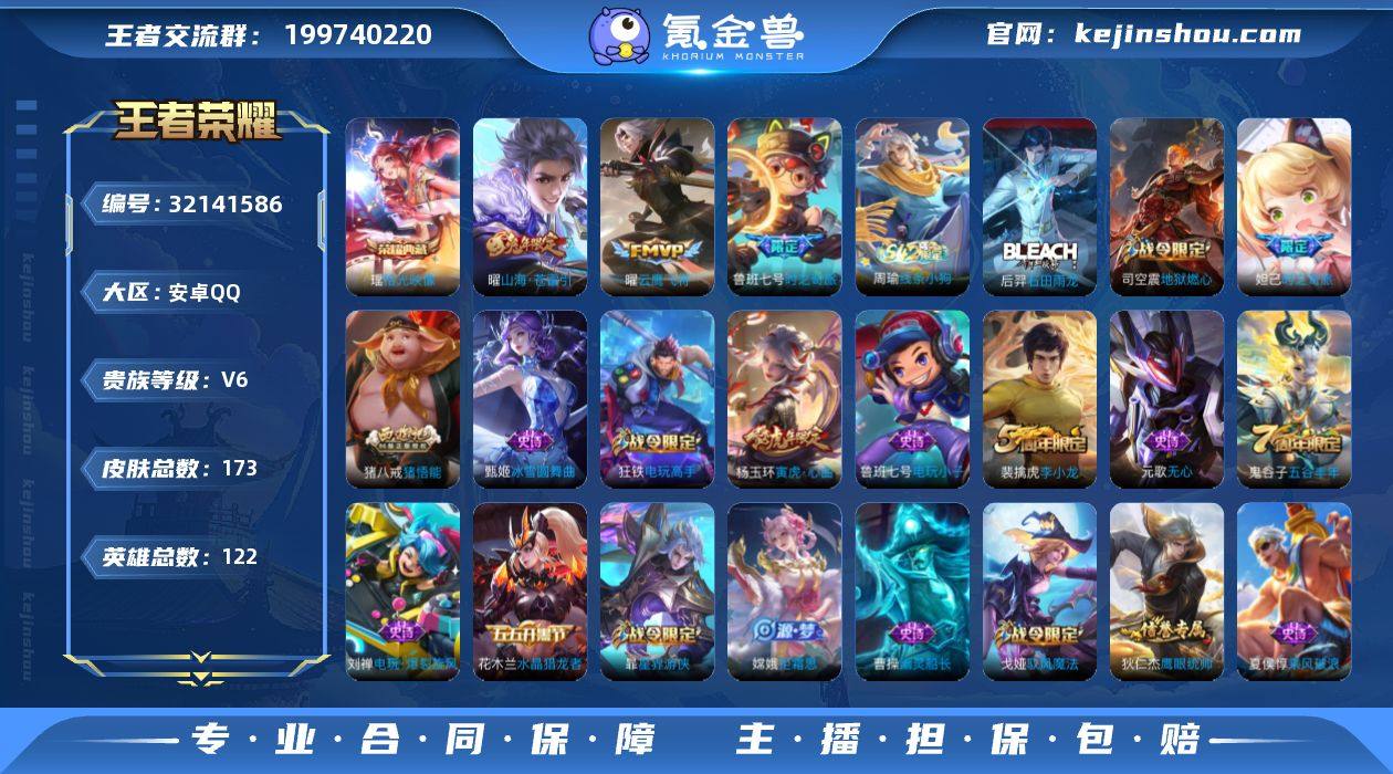 安卓手Q357区173皮1典藏3传说0无双V0 营地ID1715341944荣耀黄金II【荣耀典藏】:拾光映像【优质限定皮肤】:山海·苍雷引【传说皮肤】:时之奇旅,山海·苍雷引,云鹰飞将【史诗皮肤】:石田雨龙,暗隐猎兽者,猫狗日记,遇见飞天,功夫厨神,未来纪元,水晶猎龙者,江河有灵,地狱燃心,冰雪圆舞曲,箭羽风息,逐浪之夏,乒乒小将,地狱岩魂,电玩小子,驭风魔法,心灵战警,电玩·爆裂旋风,奇幻香踪,乘风破浪,星界游侠,偶像歌手,幽灵船长,魔术师,缤纷独角兽,无心,超时空战士,天才门将,五谷丰年,水果甜心,时之奇旅,航海奇遇记,圣诞恋歌,电玩高手,千筹问战,圣诞狂欢,吟游魔法,匿光决锋者,鬼剑武藏,乱世虎臣,皇家上将,火炮绅士,寅虎·心曲,德古拉伯爵,猫狗日记,寅虎·御盾,拒霜思,金属风暴,鹰眼统帅,高山流水,猪悟能,李小龙,魅力维加斯