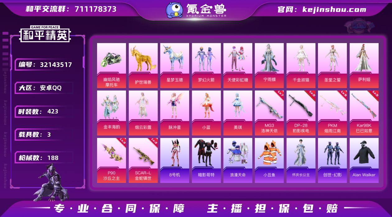 【特价出售】QQ钱包无法注销安卓Q-2稀有3载具11粉装7特效枪7热门126套装188枪皮 65769热力值 3印记 历史超级王牌9星 【2稀有】 AKM-缤纷海域 浪漫天命 【3载具】 护世瑞兽 星梦玉骢 幽焰风驰摩托车 【11粉装】 圣堂之誓 梦幻火箭 小蓝 美琪 宁雨蝶 萨利娅 脉冲星 天使彩虹糖 千金淑猫 金丰海韵 烟云彩露 【7特效枪】 SCAR-L-金蛇镇世 (3级) P90-沙丘之主 (3级) Kar98K-巳巳如意 (5级) DP-28-豹影疾电 (5级) PKM-江南烟雨 (5级) MG3-洛神天依 (7级) Mk14-福马献瑞 (1级) 【7热门】 8号机 Mark.06 小丑鱼 龟仙人 呆萌铁蟹 暗影哥特 弄潮海豚 【3飞行器】 龙翔九天飞行器 深渊漩涡飞行器 繁龙极客飞行器 【2头盔】 梦幻火箭头盔 深海小丑鱼头盔 【1背包】 神秘黑猫背包