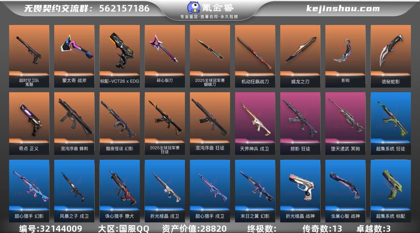 25冠军套,edg标配,超时空鬼魅,奇点正义,天界戍卫,弃王狙,混沌蜂刺ak,多刀皮,125r点