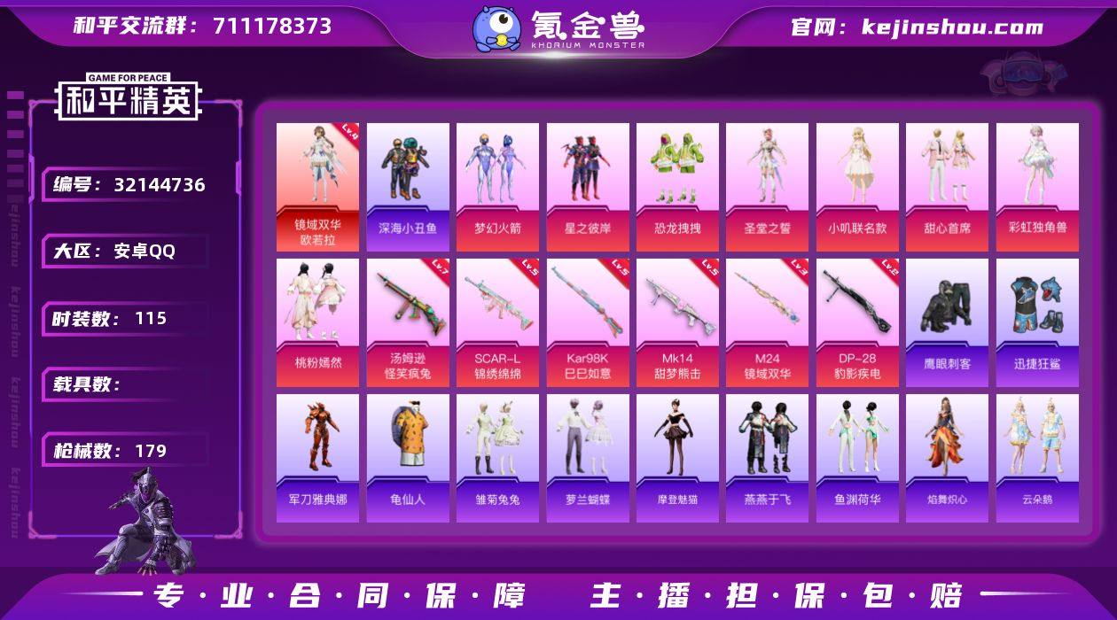 YZJ15495-可二次-安卓Q-1红装8粉装6特效枪12热门【极品女神装素材号 4级欧若拉 火箭少女 小叽联名款 甜心首席 彩虹独角兽 桃粉嫣然 灵公主 时希公主 酷蜜狂潮 诡面顽熊 双马尾 鲨鱼裤 满级汤姆逊怪笑疯兔 2级小叽联名款飞行器 小叽联名款背包头盔 恐龙拽拽背包头盔 8款飞行器】115套装179枪皮 63279热力值 5印记 历史超级王牌12星 【1红装】 镜域双华-欧若拉 (4级) 【8粉装】 圣堂之誓 梦幻火箭 甜心首席 小叽联名款 桃粉嫣然 彩虹独角兽 星之彼岸 恐龙拽拽 【6特效枪】 SCAR-L-锦绣绵绵 (5级) Kar98K-巳巳如意 (5级) DP-28-豹影疾电 (2级) Mk14-甜梦熊击 (5级) M24-镜域双华 (3级) 汤姆逊-怪笑疯兔 (7级) 【12热门】 龟仙人 浪漫假日 鹰眼刺客 迅捷狂鲨 深海小丑鱼 暗夜契约 怪笑疯兔 诡面顽熊 破蛋小黄鸡 军刀雅典娜 弄潮海豚 AKM-奇异狩猎者 【3飞行器】 梦幻火箭飞行器 繁龙极客飞行器 萌酷奶龙飞行器 【2头盔】 梦幻火箭头盔 花间之火头盔 【3背包】 梦幻火箭背包 深海曼妙背包 心之恋语背包 营地ID:935683194