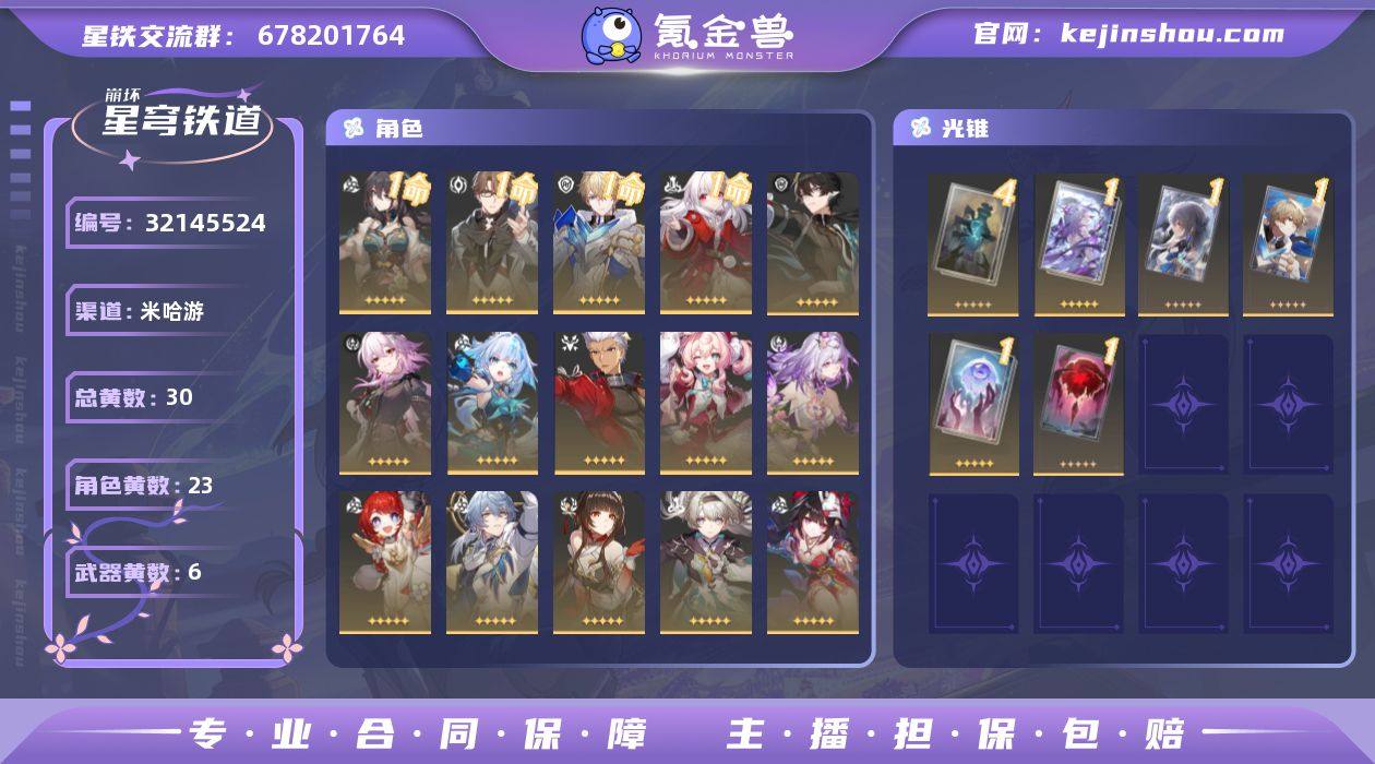总黄数:30 五星光锥数:6 五星角色数:23 开拓等级:69 开拓者性别:女 星轨专票:0 梦华数量:0 星琼数量:250 1命阮·梅,1命瓦尔特,1命杰帕德,1命克拉拉,0命丹恒·腾荒,0命长夜月,0命刻律德菈,0命Archer,0命风堇,0命遐蝶,0命缇宝,0命星期日,0命灵砂,0命流萤,0命花火,0命真理医生,0命银枝,0命托帕&账账,0命卡芙卡,0命刃,0命姬子,0命布洛妮娅,0命彦卿 4精孤独的疗愈,1精让告别,更美一些,1精但战斗还未结束,1精制胜的瞬间,1精记一位星神的陨落,1精记忆永不落幕 换绑材料:不提供换绑材料 邮箱状态:不送邮 psn绑定情况:否 taptap绑定情况:否 卖家说:可砍价70以上我都可以接受