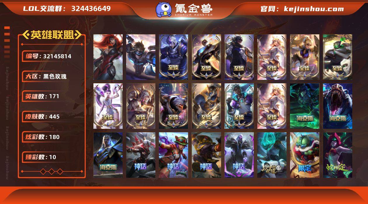 t36694【黑色玫瑰】 445皮肤 180炫彩 10臻彩 22神话/81限定/45传说/171英雄 账号等级:689 【重要头像】觅心之翼奎因 我麦是开的么 KDA萨勒芬妮 EDG格雷福斯 烈焰美人薇恩 战斗学院伊泽瑞尔神话炫彩 至臻战斗学院蕾欧娜 至臻女帝黛安娜 至臻星之守护者索拉卡 至臻KDA卡莎 【重要皮肤】灵魂莲华劫至臻 星之守护者艾克至臻 女帝黛安娜至臻 战斗学院蕾欧娜至臻 真实伤害赛娜至臻 星之守护者索拉卡至臻 源计划阴劫至臻 征服者贾克斯至臻 飞升战神潘森至臻 KDA二代卡莎至臻 未来战士锤石至臻 未来战士锤石2022至臻 殿堂传奇薇恩 灰烬骑士派克 海克斯科技雷克顿 海克斯科技斯维因 新卧虎藏龙贾克斯 摄魂使者薇恩 胜利剑圣易 胜利女神娑娜 胜利女神希维尔 胜利之王泰达米尔 胜利巨口克格莫 奥斯曼大帝泰达米尔 安妮梦游仙境 电玩勇者锐雯 玉剑传说无影 玉剑传说舞剑仙 天龙之子斯莫德 替父从军花木兰 碧玉之牙卡西奥佩娅 张辽文远 金猪烈焰瑟庄妮 烈焰美人薇恩 神龙之翼库奇 胜利之树茂凯 胜利女神奥莉安娜 胜利枪神格雷福斯 胜利之剑亚托克斯 甜心宝贝安妮 觅心女王艾希 魅惑女巫莫甘娜 魅惑女巫奈德丽 死亡誓约卡特琳娜 泳池派对佐伊 泳池派对蕾欧娜 电玩战魂赫卡里姆 御星魔矢艾希 创战纪希维尔 EDG格雷福斯 SKTT1烬 SKTT1阿利斯塔 SKTT1雷克顿 SSW锤石 SSW雷恩加尔 SSW辛吉德 SKTT1贾克斯 SKTT1婕拉 暗杀星努努和威朗普 暗杀星慎 Fnatic迦娜 Fnatic嘉文四世 防暴士兵辛吉德 防暴天使凯尔 钢铁之翼艾尼维亚 冠军典狱长锤石 冠军之矛卡莉丝塔 冠军之刃锐雯 冠军之刃锐雯2016 冠军之志瑞兹 鬼影森森茂凯 鬼影重重魔腾 胡桃夹子萨科 惊悚派对阿木木 警用试作体K9内瑟斯 南瓜头费德提克 破空枪骑孙悟空 圣诞精灵崔丝塔娜 圣诞开心鬼提莫 圣诞狂欢基兰 圣诞老人古拉加斯 糖果使徒费德提克 外星装甲库奇 卧虎藏龙贾克斯 无头...