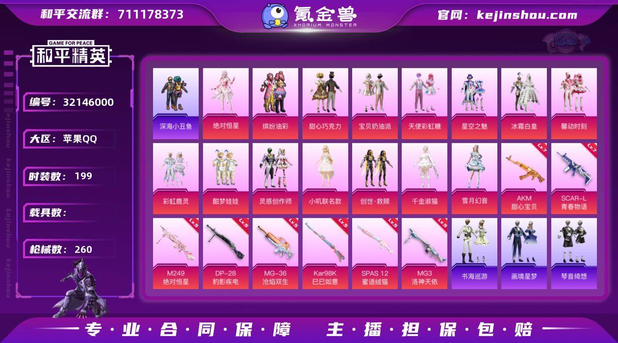 苹果 【素材号 缤纷油彩/浪漫天命/深海小丑鱼/暗影哥特/甜心巧克力/AKM-甜心宝贝(七级)/SCAR-L-青春物语(七级)/】手Q-15粉装-9特效枪-0载具-4粉色飞行器-82568热力值-16王牌印记-199套装-260枪皮 【热门品类】:粉装-缤纷油彩,套装-浪漫天命,套装-深海小丑鱼,套装-小丑鱼,套装-暗影哥特,套装-粉红小猪 【粉色套装】:角色-绝对恒星,粉装-甜心巧克力,粉装-宝贝奶油派,粉装-天使彩虹糖,粉装-缤纷油彩,粉装-星空之魅,粉装-冰霜白皇,粉装-馨动时刻,粉装-彩虹鹿灵,粉装-酣梦娃娃,粉装-灵感创作师,角色-小叽联名款,套装-创世·救赎,角色-千金淑猫,粉装-雪月幻音 【粉色枪皮等级】:AKM-甜心宝贝(七级),SCAR-L-青春物语(七级),AKS-74U-森灵之息(五级),Kar98K-巳巳如意(五级),SPAS-12-蜜语绒猫(五级),M249-绝对恒星(五级),DP-28-豹影疾电(五级),MG3-洛神天依(五级),MG-36-沧焰双生(五级) 【粉色枪皮】:AKM-甜心宝贝,SCAR-L-青春物语,AKS-74U-森灵之息,Kar98K-巳巳如意,SPAS-12-蜜语绒猫,M249-绝对恒星,DP-28-豹影疾电,MG3-洛神天依,MG-36-沧焰双生 【粉色飞行器】:绝对恒星飞行器,炫彩糖果飞行器,春暖花开飞行器,萌物绒绒飞行器 【粉色降落伞】:绝对恒星降落伞,甜心宝贝降落伞,至尊龙雀降落伞,春暖花开降落伞,暗夜玫瑰降落伞,绚金瑰梦降落伞,第五大道降落伞,猪猪侠降落伞,蜜语绒猫降落伞,星梦奇缘降落伞,千金淑猫降落伞,星穹咏叹调降落伞,炫彩糖果降落伞 【稀有套装】:套装-巳巳如意,角色-超感刻度,角色-甜心蒙太奇,套装-雪国风尚,套装-炫彩糖果,套装-雏菊兔兔,套装-萝兰蝴蝶,套装-糖糖葫芦,套装-青团波波,角色-都市丽猫,套装-燕燕于飞,套装-鱼渊荷华,玩偶服-小狗蛇点点,角色-蜜桃派对,套装-萌萌史莱姆,套装-粉恋花,套装-紫幽梦,套装-蓝冰羽,角色...