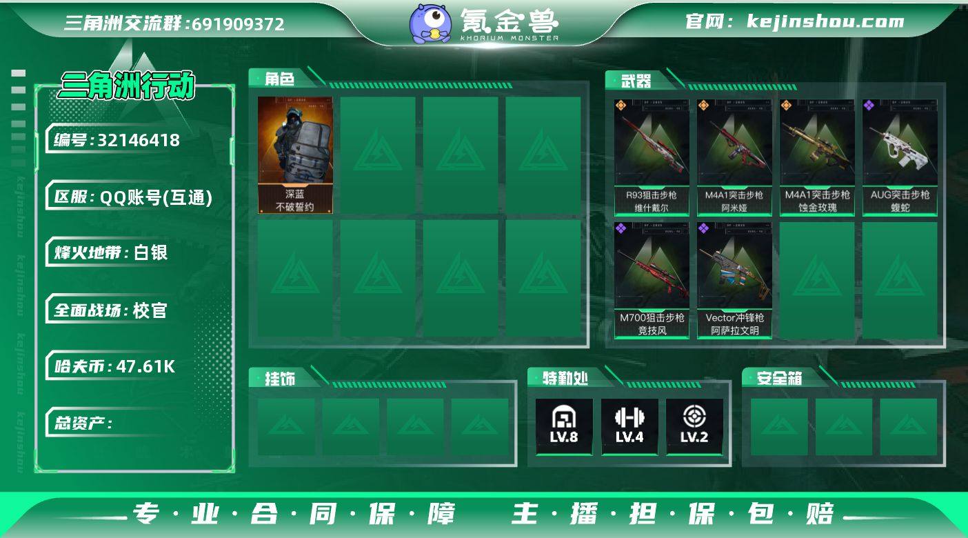 DSX1264【连体号带暗区暗区 仓库价值17.2M 柯恩币377812 11套装 1红皮 3刀 工兵铲 赢家匕首 下弦月】三端互通-总价值78.13M-哈夫币47,619.84-烽火地带等级59-烽火地带段位白银【干员皮肤】深蓝-不破誓约 露娜-金牌射手 红狼-电锯惊魂【近战武器】黑鹰 龙牙【枪皮】AK-12突击步枪-旧工业 M16A4突击步枪-斑马 M4A1突击步枪-粉色涂装 M4A1突击步枪-高雅黑 M4A1突击步枪-海色 M4A1突击步枪-零点 M4A1突击步枪-繁盛 M4A1突击步枪-阿米娅 M4A1突击步枪-蚀金玫瑰 AKM突击步枪-战术演练 AKM突击步枪-锦绣 QBZ95-1突击步枪-粉色涂装 QBZ95-1突击步枪-高雅黑 QBZ95-1突击步枪-海色 QBZ95-1突击步枪-2026 QBZ95-1突击步枪-竞技风 QBZ95-1突击步枪-凌霄戍卫 AKS-74U突击步枪-磐石 AKS-74U突击步枪-冰天雪地 ASh-12战斗步枪-繁盛 ASh-12战斗步枪-无极限 K416突击步枪-几何迷彩 K416突击步枪-高雅黑 K416突击步枪-重击 K416突击步枪-碳纤维 K416突击步枪-前沿科技 K416突击步枪-一帆风顺 K416突击步枪-冬日风情 K416突击步枪-腊梅 K416突击步枪-行动记录 M16A4突击步枪-高雅黑 AUG突击步枪-浅蓝涂装 AUG突击步枪-全金属外壳 AUG突击步枪-前沿科技 AUG突击步枪-蝮蛇 M7战斗步枪-红色涂装 M7战斗步枪-黑巧甜心 M7战斗步枪-重击 M7战斗步枪-前沿科技 M7战斗步枪-捣蛋鬼 M7战斗步枪-百步穿杨 SG552突击步枪-浅蓝涂装 SG552突击步枪-海浪 SG552突击步枪-2026 SG552突击步枪-马年新春 SG552突击步枪-哈夫克警备 SG552突击步枪-运动员 AK-12突击步枪-变色龙 AK-12突击步枪-零点 SCAR-H战斗步枪-数码迷彩 SCAR-H战斗步枪-电路图 SCAR-H战斗步枪-荣耀列队 SCAR-H战斗步枪-黄昏 SCAR-H战斗步
