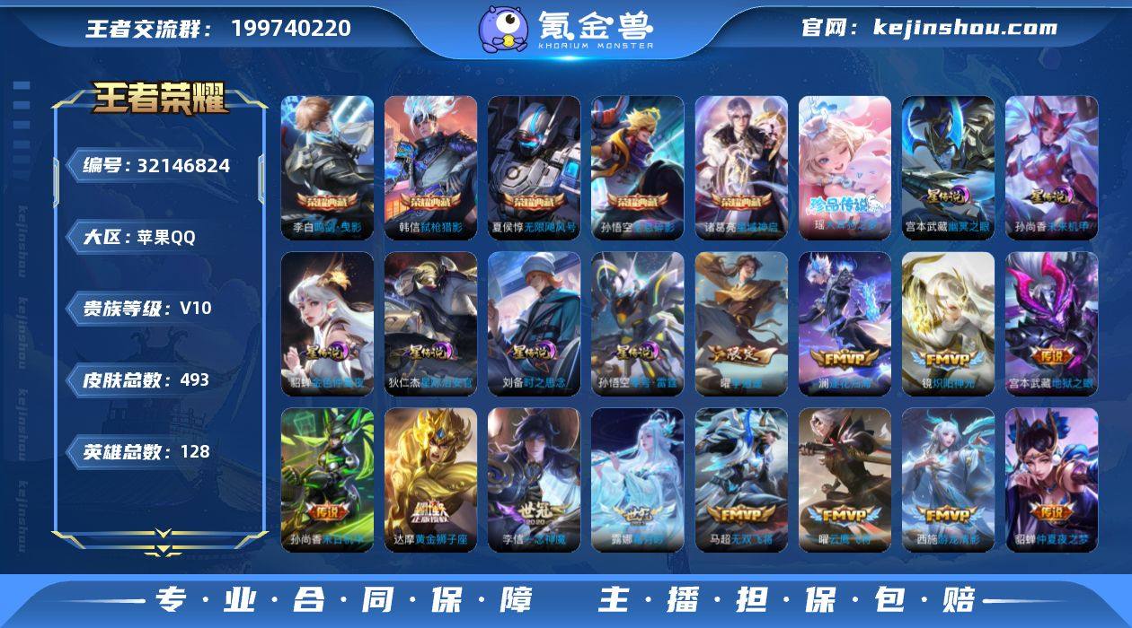93皮·6典藏·1珍品·7星传说·37传说·大耳狗之梦·弑枪猎影·九霄神辉·鸣剑曳影·无限飓风号·寅虎焰心·寅虎瑞焰·金色貂蝉·神骥逐星野·寅虎赤拳·孙尚香异界灵契·李逍遥·兰陵王默契交锋·白虎志·祈雪灵祝·武圣·太华·时雨天司·凤求凰·神威·至尊宝·可二次】w18183-苹果Q-128英雄-493皮肤-26王者印记-300铭文-贵族积分21w【贵族10】【6典藏·1珍品·7星传说·37传说·1天幕·10按键·253个性戳戳·284幸运值】【因赛季更新游戏段付以上号为准!】 【英雄全皮】:刘禅全皮,高渐离全皮,刘邦全皮,孙权全皮,鬼谷子全皮,狂铁全皮,猪八戒全皮,敖隐全皮,蒙恬全皮,空空儿全皮,影全皮 【荣耀典藏】:孙悟空全息碎影,夏侯惇无限飓风号,李白鸣剑曳影,诸葛亮星域神启,花木兰九霄神辉,韩信弑枪猎影 【珍品传说】:瑶大耳狗之梦 【星元皮肤】:鲁班七号寅虎焰心,狄仁杰星际治安官,刘备时之思念,孙悟空零号雷霆,孙尚香未来机甲,宫本武藏幽冥之眼,貂蝉金色仲夏夜 【天幕】:共赏芳华天幕 【传说皮肤】:马超神骥逐星野,桑启鸣野蒿,澜逐花归海,艾琳觅芳踪,露娜霜月吟,马超无双飞将,孙策挚爱之约,裴擒虎寅虎赤拳,鲁班七号寅虎瑞焰,孙尚香异界灵契,貂蝉遇见胡旋,赵云淬星耀世,西施游龙清影,曜李逍遥 ,兰陵王默契交锋,公孙离祈雪灵祝,诸葛亮时雨天司,铠绛天战甲,镜炽阳神光,虞姬启明星使,孙悟空零号赤焰,关羽武圣,曜云鹰飞将,李信一念神魔,刘备时之恋人,伽罗太华,干将莫邪久胜战神,达摩黄金狮子座,百里玄策白虎志,梦奇胖达荣荣,后羿黄金射手座,貂蝉仲夏夜之梦,李白凤求凰,孙尚香末日机甲,宫本武藏地狱之眼,孙悟空地狱火,狄仁杰超时空战士 【限定皮肤】:白起狰,暃埋骨钱,姜子牙天穹之誓,狄仁杰阴阳师,虞姬凯尔特女王,廉颇寅虎御盾,赵云皇家上将,墨子神迹守卫,妲己时之彼端,嬴政优雅恋人...