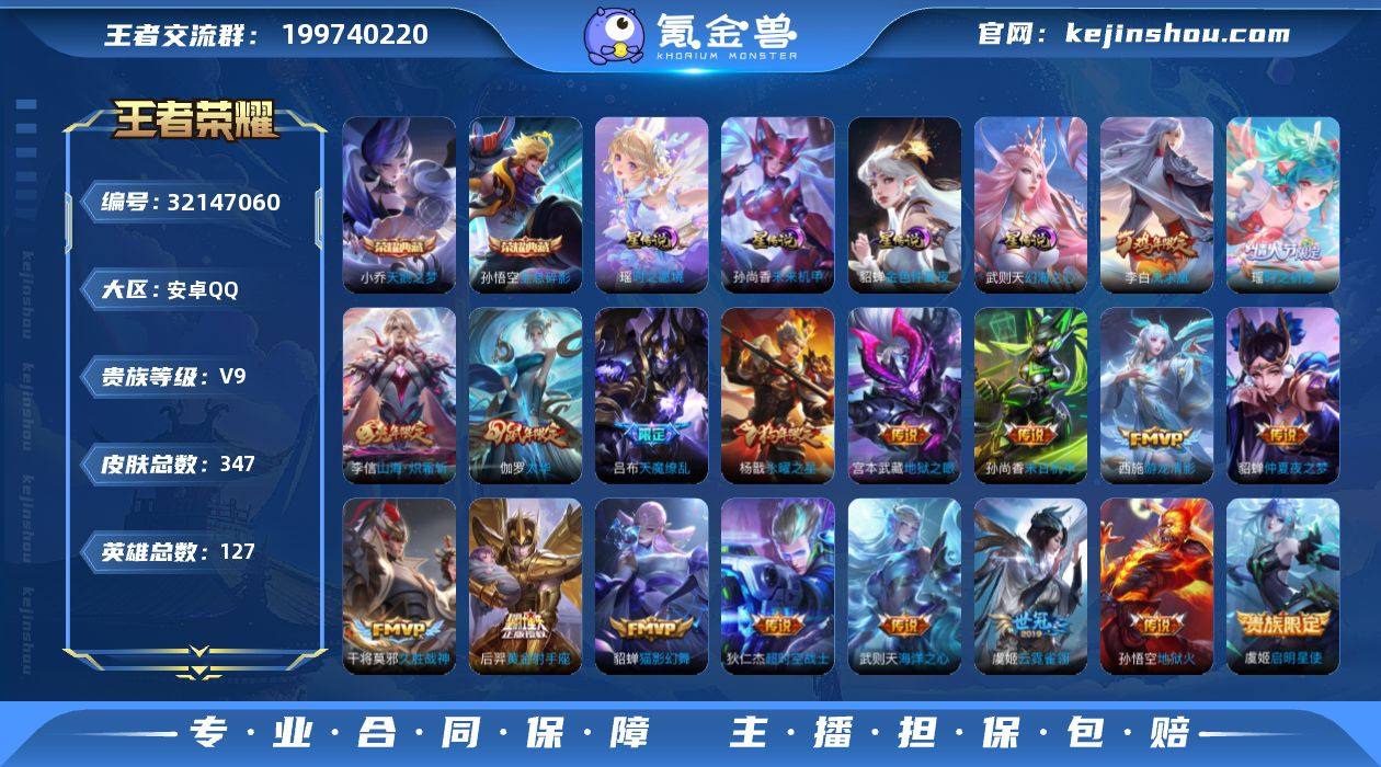 【WZ181163】347皮肤-2典藏皮肤-1典藏英雄-18传说-102史诗【荣耀典藏】:武则天英雄,孙悟空全息碎影,小乔天鹅之梦【传说皮肤】:李信山海炽霜斩,瑶时之祈愿,西施游龙清影,虞姬启明星使,伽罗太华,貂蝉猫影幻舞,干将莫邪久胜战神,虞姬云霓雀翎,后羿黄金射手座,杨戬永曜之星,貂蝉仲夏夜之梦,李白凤求凰,孙尚香末日机甲,宫本武藏地狱之眼,孙悟空地狱火,吕布天魔缭乱,武则天海洋之心,狄仁杰超时空战士【限定皮肤】:白起狰,狄仁杰阴阳师,虞姬凯尔特女王,赵云皇家上将,赵云引擎之心,墨子神迹守卫,嬴政优雅恋人,孙尚香蔷薇恋人,庄周蜃楼王,庄周玄嵩,庄周高山流水,高渐离死亡摇滚,阿轲迷踪丽影,孙膑妖精王,扁鹊炼金王,芈月重明,芈月幻夜卜梦,吕布天魔缭乱,周瑜真爱至上,周瑜赤莲之焰,元歌无心,夏侯惇朔风刀,甄姬幽恒,曹操烛龙,典韦穷奇,典韦蓝屏警告,马可波罗山海玄木吟,狄仁杰魔术师,狄仁杰万华元夜,达摩沙漠行僧,项羽海滩派对,老夫子醍醐杖,老夫子航海奇遇记,关羽冰锋战神,程咬金演武夺筹,刘邦夺宝奇兵,王昭君凤凰于飞,兰陵王驯魔猎人,兰陵王金庭之子,花木兰青春决赛季,亚瑟狮心王,牛魔御旌,后羿圣弓游侠,李元芳银河之约,李元芳云中旅人,虞姬启明星使,钟馗驱傩正仪,杨玉环遇见飞天,杨戬永曜之星,女娲朔望之晖,哪吒逐梦之翼,干将莫邪真爱魔法,雅典娜单词大作战,雅典娜黎明之约,蔡文姬奇迹圣诞,蔡文姬繁星吟游,太乙真人饕餮,鬼谷子原初探秘者,鬼谷子五谷丰年,大乔白鹤梁神女,黄忠火炮绅士,苏烈千军破阵,百里玄策原初追逐者,百里守约朱雀志,弈星混沌棋,梦奇顽趣,公孙离蜜橘之夏,沈梦溪星空之诺,沈梦溪大漠名商,明世隐疑决卦,裴擒虎李小龙,裴擒虎擒涛扼浪,狂铁御狮,米莱狄御霄,瑶时之祈愿,云中君纤云弄巧,李信山海炽霜斩,...