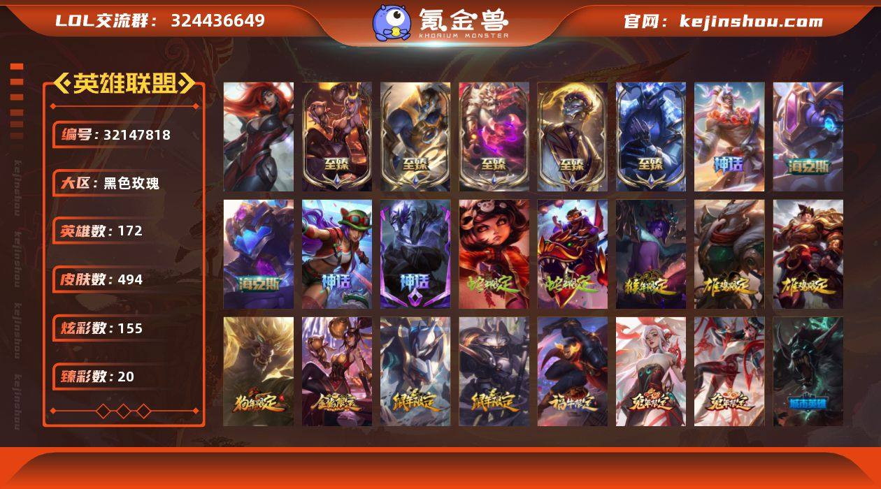 t37451【黑色玫瑰】494皮肤 155炫彩 20臻彩 13神话/89限定/63传说/172英雄 账号等级:359 单双排段位:白银 【重要头像】星守阿狸 至爱的鹿 觅心游侠卢锡安 击拳 幼犬内瑟斯 【重要皮肤】暗裔英雄嘉文四世至臻 DRX亚托克斯至臻 神龙尊者均衡之龙沃利贝尔至臻 飞升战神潘森至臻 焰执事布兰德至臻 烈焰美人薇恩至臻 灰烬杀手塞拉斯 海克斯科技克格莫 海克斯科技拉莫斯 西部魔影炽天使永恩 圣天龙李青 胜利行刑官德莱文 胜利剑圣易 胜利女神娑娜 胜利之王泰达米尔 胜利巨口克格莫 荣誉使者玛尔扎哈 天龙之子斯莫德 天龙之子易 剪纸仙灵艾瑞莉娅 剪纸仙灵婕拉 你看见过我的熊猫吗安妮 南天之怒沃里克 定海神珍孙悟空 紫金罗刹莫甘娜 张辽文远 司马懿仲达 烈焰美人薇恩 神龙之翼库奇 福牛守护者德莱厄斯 怦然心动凯特琳 黯然心伤阿木木 甜心之羽霞 甜心之翎洛 觅心游侠卢锡安 觅心萝莉金克丝 幽梦玫瑰辛德拉 幽梦玫瑰泰隆 水晶玫瑰斯维因 北极星神黛安娜 北极星圣贤基兰 雪球也能爆炸吉格斯 圣诞老人布隆 冰雪驯鹿波比 持胡萝卜的雪人易 魄罗骑士瑟庄妮 魅惑女巫迦娜 大魔法锅布里茨 死亡誓约劫 海之歌奈德丽 海之歌萨勒芬妮 海之歌永恩 泳池派对凯特琳 泳池派对奥莉安娜 泳池派对厄运小姐 泳池派对格雷福斯 泳池派对雷克顿 DRX亚托克斯 DRX艾希 EDG厄斐琉斯 EDG佐伊 FPX薇恩 SSG纳尔 SKTT1娜美 SKTT1雷克顿 SSW雷恩加尔 SSW图奇 SKTT1劫 SKTT1李青 暗杀星奥莉安娜 暗杀星慎 Fnatic迦娜 Fnatic库奇 防暴机器人布里茨 冠军典狱长锤石 冠军掠夺者卡兹克 冠军之血希瓦娜 鬼影森森茂凯 鬼影重重魔腾 海贼瑞兹 红桃杰克崔斯特 胡桃夹子萨科 密林猎手提莫 圣诞精灵崔丝塔娜 圣诞老人古拉加斯 圣诞驯鹿克格莫 无头骑士赫卡里姆...