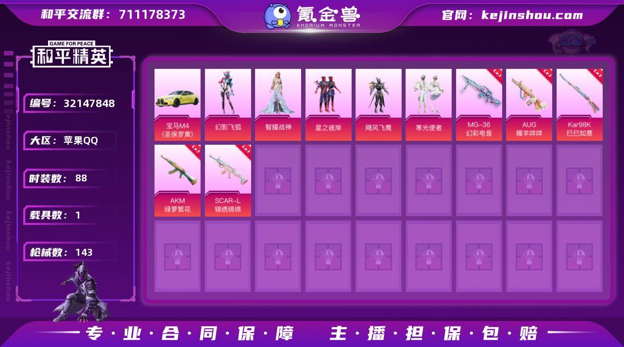 7粉装 8粉枪 1载具 88套装 143枪皮 宝马M4(圣保罗黄) 星之彼岸 寒光使者 甜蜜菠萝 幻影 快乐星愿 幻羽潜行 疯狂小兔子 猛禽 荣耀 神气柴柴 柠萌假日 青玉碎影 龟仙人 明鸳圣池 涂山之恋 星际旅行 空岛之星 贝斯之夜 惊鸿侠骨 竞技名士 锦衣飞扬 元气发射 龙的传人 快闪甜心 春光漫游 湖蓝色名流 绯格组合 完美偶像 旭日情侣 缤纷果语 沙漠毒蛇 飓风飞鹰 角色-智耀战神 S686-生命誓言 汤姆逊-炫彩节奏 DBS-焰鹰斗篷 汤姆逊-古战神甲 DP-28-焰鹰斗篷 M416-摩登王国 GROZA-懵萌河马 AUG-耀粉歌者 S12K-玩趣呆呆 M762-牛气冲天 QBZ-未来歌姬 M249-糯团青竹 G36C-懵萌河马 AC-VAL-乌木金纹 Mini14-穿刺龙虾 蜜獾-天降萌叽 MG3-惊鸿侠骨 DP-28-彩虹符号 PKM-懵萌河马 M24-炫彩节奏 AC-VAL-快闪甜心 莫辛纳甘-懵萌河马 SCAR-L-锦绣绵绵(5级) AMR-乌木金纹 M200-惊鸿侠骨 UZI-啾咪啾咪 MK20-H-快闪甜心 VSS-彩虹符号 Mini14-涂山之恋 MG3-萝萝小趴兔 SKS-迅猛狂鲨 爆炸猎弓-惊鸿侠骨 M416-绯红前夜 AWM-焰鹰斗篷 QBU-飒粉甜心 M417-惊鸿侠骨 Vector-焰鹰斗篷 P90-快闪甜心 MP5K-乌木金纹 UZI-天降萌叽 UMP45-生命誓言 M249-莲影清波 SPAS-12-天使羽翼 汤姆逊-天降萌叽 SKS-炫彩节奏 M249-星之彼岸 AKM-龙的传人 Vector-彩虹符号 AWM-圣堂之誓 P90-乌木金纹 AC-VAL-闲梦青缨 AKM-绿萝繁花(5级) P90-倾城蜜语 SCAR-L-红色方程式 S686-彩虹符号 Kar98K-巳巳如意(5级) AUG-暖羊咩咩 MG-36-幻彩电音(7级)