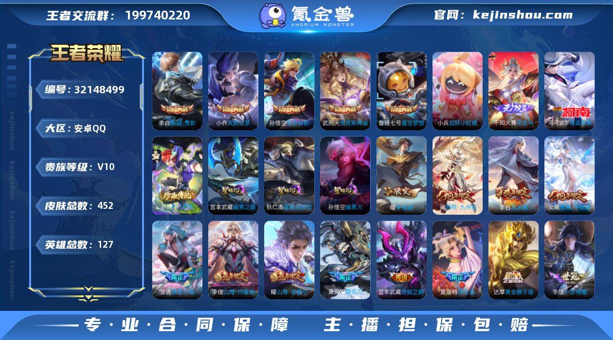 Y-DN2938 安卓QQ V10 452皮 6典藏1无双2珍品传说【狐妖小红娘小兵 36按键2天幕】3星元179限定41传说 全能高手 255幸运值 32张改名卡 5875星币 2773英雄碎片 1689皮肤碎片 营地号:461217481 【珍品传说】怪盗基德,孙策时之奇旅, 【无 双】花合斗, 【荣耀典藏】全息碎影,鸣剑·曳影,武则天,倪克斯神谕,天鹅之梦,星空梦想, 【星元皮肤】幽冥之眼,幽冥火,星际治安官, 【热门限定】愿照·千秋盛,愿照·九州拓,落雪白狼,凤求凰,乘龙·铭钟鼎,虎魄,龙胆,李逍遥,冰锋战神,曦玄引女,曦玄引男,异界灵契,时雨天司,天狼狩猎者,天狼运算者,天狼征服者,寅虎·御盾,默契交锋女,逐梦之影,逐梦之星,逐梦之翼,逐梦之光,白晶晶,引擎之心,淬星耀世,无尽星芒,枫霜尽,时之奇旅,岱宗,玄嵩,霸王别姬男,霸王别姬女,暗影游猎,百木心枪,启示之音,时之奇旅,神器·万象笔,神器·狴犴令,山海·玄木吟,山海·炽霜斩,山海·苍雷引,齐天大圣,无限倾心男,无限倾心女,浮生妄,匿光侦查者,鹤归松栖男,鹤归松栖女,启明星使,遇见神鼓,霜北刀,埋骨钱,逐霄战戟, 【限定传说】拒霜思,猫狗日记男,久胜战神,一念神魔,猫狗日记女,电玩小子,孙行者,猪悟能,美猴王,蓝屏警告,地狱火,地狱之眼,苍穹之光,暗夜猫娘,游龙清影,时之恋人女,诗语江南,修罗,龙骑士,梁祝,未来纪元,神迹守卫,云霓雀翎,黄金狮子座,黄金射手座,天秀·幻梦,天秀·启明,黄金分割率,超时空战士,魅语,晚萤,胖达荣荣,千年之狐,末日机甲男,雪上飞焰,唤灵魅影,原初探秘者,黎明之约,暗隐猎兽者,水晶猎龙者,金属风暴,地狱岩魂,热力回旋,特工魅影,曙光守护者,圣诞恋歌,青蛇,白蛇,舞动绿茵,嘻哈天王,逐浪之夏,心灵战警,紫霞仙子,功夫厨神,心灵骇客,狮舞东方,幽灵船长,乘风破浪,圣诞狂欢,星夜王子,节奏热浪,天才门将,绅士熊喵,暗夜贵公子,偶像歌手,街头霸王,箭羽风息,暗渊魔法,乐园奇幻夜,月团寄思,无畏之灵·狰,摇滚巨星...